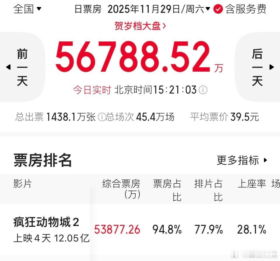 疯狂动物城2票房破12亿 《疯狂动物城2》的票房表现实在是太疯狂了。票房已经破了12亿,明天应该就能超过第一部了。而且,今天的单日票房已经破了5亿,今天单日票房冲7亿甚至更多(8亿?)都是极有可能的。单日票房破7冲8(亿),这样的单日票房表现,在非春节档电影中应该是没有的吧。
