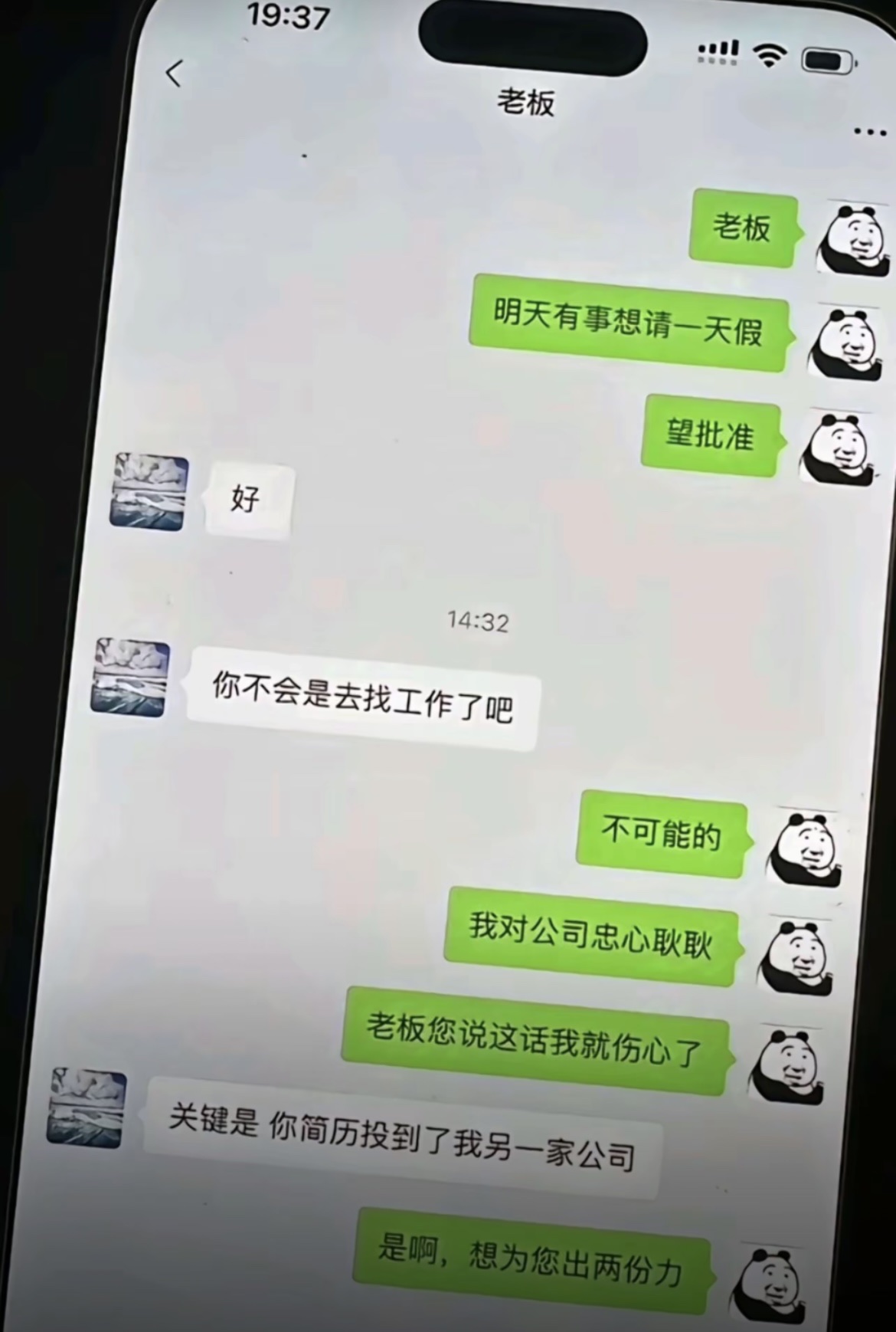 我对公司忠心耿耿,老板您说这话我就伤心了 关键是你简历投到了我另一家公司