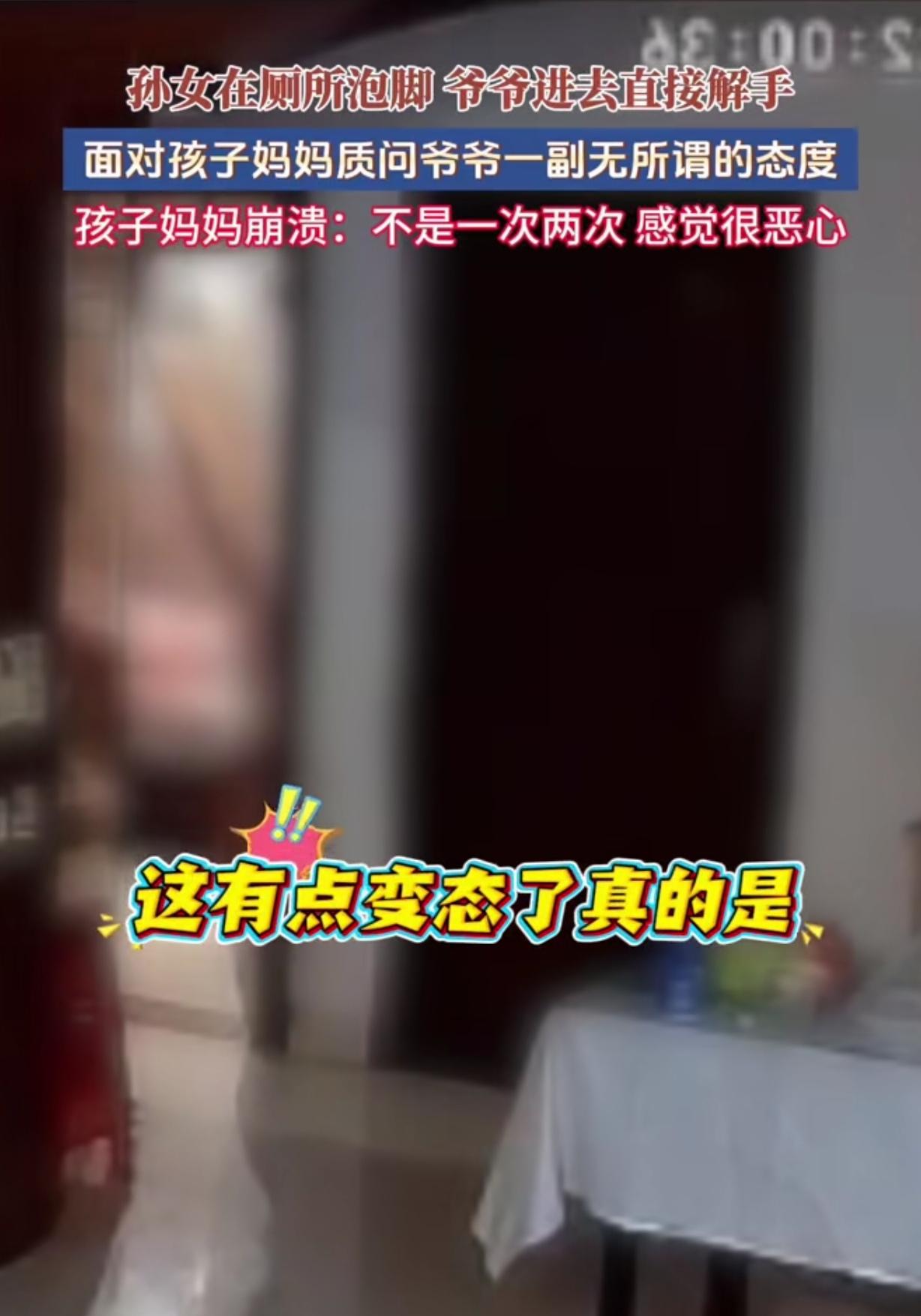 “家丑外扬!”福建,一孙女在卫生间泡脚,爷爷进去当着孙女的面解手,吓得孙女闭眼睛不敢看,儿媳气的怒斥公公:你太恶心了吧?她是女孩子又不是男孩子。万万没想到,爷爷却不以为然的说:谁让她不出去的。奶奶闻听火冒三丈,直接把老头赶出家门,让他自己租房子独居。不料,网友都站在爷爷这边,指责孙女不该在厕所泡脚。 一女子很爱干净,也让她几岁的女儿养成每晚泡脚的习惯,在女子看来,从小养成好习惯能受益终生。 这天晚上,女子让女儿睡前泡脚,然后就去收拾房间去了。 女儿听到妈妈的吩咐,来到卫生间,用水盆接了热水,觉得再把水盆从厕所端到客厅泡脚太麻烦,她就直接坐在厕所的小凳子上泡了起来。 女子不知道的是,爷爷竟然径直走进卫生间,也没让孙女出去,就直接当着孙女的面解手。 孙女虽然少不更事,但也知道男女有别了,就闭着眼睛没有看。 爷爷解手后冲了水,被女子听到了,她心里咯噔一下,赶紧问女儿有没有在泡脚? 女儿回答她说在泡脚,女子又问女儿在哪里泡?当听女儿说在卫生间,她立马跑了过去。 果不其然,女子看到公公,从厕所里走了出来,刚才的冲水声就是他按的,说明公公刚才进卫生间方便了,而女儿说她在卫生间泡脚,难道公公没避开女儿? 女子赶紧跑进卫生间,问女儿,爷爷刚才是不是小解了,女儿告诉她是的,但她闭眼睛没看。 女子听了气的心跳加速,她实在忍不住了,责问公公:你孙女在里面,你就那样直接尿?女孩子不比男孩子,你真的是… 女子感觉太无语了,人有三急,公公憋不住了想解手可以,应该让女儿出去,他再方便才对呀,怎么这么为老不尊呢? 公公却不以为然的说:她没出去。女子听了更是气不打一处来:她没出去,你不会让她出去吗,你说你上个厕所呀,这有点变 态了,真的是… 不怪女子发这么大火,因为公公这样不是一次两次了,她觉得真是无语了,感觉很恶心,公公太没边界感了。 女子把这件事告诉了婆婆,婆婆也大为光火,把公公骂了一顿,勒令他搬出去自己租房住。 但奇怪的事,很多人都觉得孙女和女子做的不对,这是家丑,不可外扬,有什么事不能在家解决吗,看老人也不是那种强势的性格,女子有点小题大做了。 如果说不是一次两次了那为啥还让孩子在卫生间泡脚呢?家有老人应该多体谅体谅老人的难处,一方面要照顾好老人,一方面要多提醒孩子该怎样做,因为人一老,身体机能下降,有尿急尿频,再加上小脑萎缩,所以,年轻人永远也体会不到年老的感受啊。 整个事情算是比较正常的。这个老年人估计生活比较麻木。孙女在厕所泡脚是不好的。影响人家上厕所。人有三急呀,有这个事情还是可以谅解的。还有,在两性这个事情上,过度敏感,会额外制造家庭矛盾。 听孩子的声音应该还很小,老人尿急憋不住,家里就一个厕所情有可缘,没有必要上纲上线,有能力就搬出去住。 儿媳妇愿意让公公住在家里,愿意喊老爸,就说明至少不太过分。爷爷作为男同志,不管卫生间有何人,是何年龄,都应该避嫌。完全可以跟婆婆说,把孩子带出来。 这事儿真够闹心的,说到底就是一个卫生间惹的祸!我觉得两边都有点委屈,但做法都不算漂亮。 爷爷吧,确实急了憋不住,这不是故意使坏。 但再急,看见孩子坐那儿泡脚呢,张口说声“丫头,爷爷急着上厕所你先出去一下”,能费多大事?这层窗户纸不捅破,自己解开裤子就方便,孩子吓得闭眼,搁哪个妈妈能不炸? 都讲究男女有别了,亲爷爷也得注意点,何况孩子还是个小姑娘,心里膈应是真难受。老爷子那句“谁让她不出去”,听着就有点推卸责任了。 孙女子呢,卫生间说到底毕竟是解决大小便的地方,坐里头泡脚确实不合适。孩子小不懂事可以理解,主要是大人得教。 “图方便”三个字,这次图出了大麻烦。妈妈当时要是在旁边提醒一句“把盆端出来泡”,也就没后头的事了。 当妈的气头上直接冲公公嚷嚷“恶心”“变 态”,这话太重了。老人家的尊严得顾着,好好说比吵架管用。 她心疼女儿没错,但这把火点起来,把家吵成公共话题,网上骂声一片,老人被赶出去租房,伤的是一家人。家丑外扬有时候解决不了问题,反而火上浇油,搞得爷俩更难相处。 《反家庭暴力法》第2条:精神侵害同样构成家暴。 爷爷明知孙女在卫生间泡脚,却未要求其回避,直接当着孙女面解手,导致孩子造成心理恐惧。虽未直接殴打,但该行为违背公序良俗,侵犯未成年人的性羞耻权及人格尊严。 尿急是客观需求,但没履行避让义务如口头提醒孙女离开,反而以侵害他人权益的方式满足自身需求,违反“家庭成员互相尊重”的法定义务。 女子明知家中仅一卫生间且老人尿频,仍默许孩子在厕所长时间泡脚,属功能错位使用,没提前建立家庭规则,对冲突发生有次要责任。 对此,你怎么看? 关注@灋律盐究员 学法辩是非,用法止纷争。