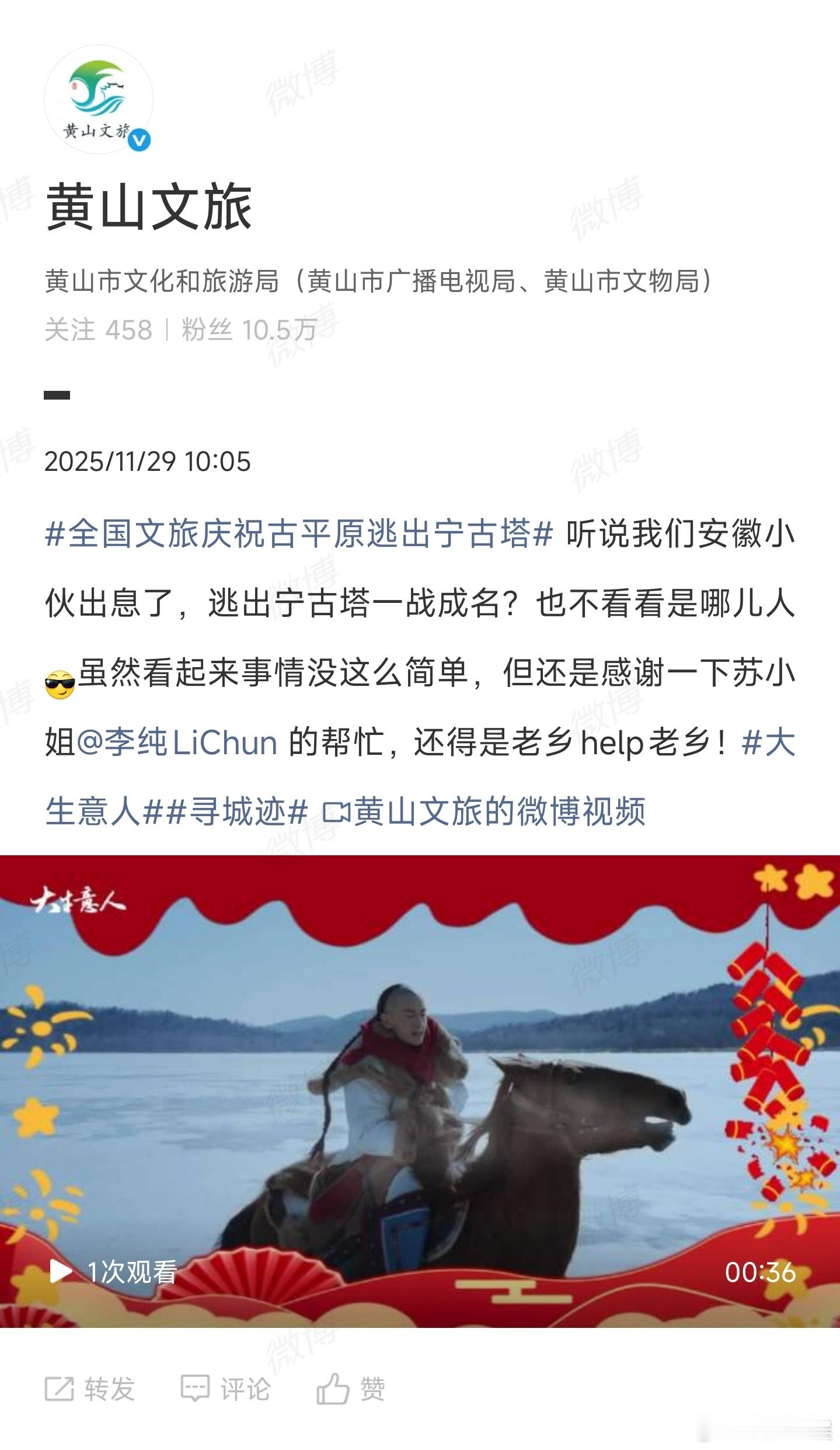 全国文旅庆祝古平原逃出宁古塔 看大生意人居然被各地文旅种草了,古平原每到一个地方,当地文旅就送上特色祝福,这道具式联动让追剧更有趣,已经按捺不住想沿着他的路线旅行了,一起边追剧边规划下一站旅行