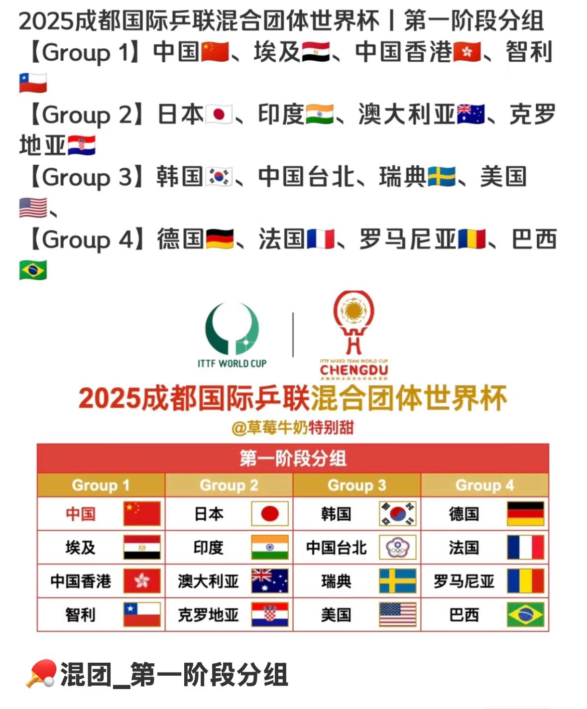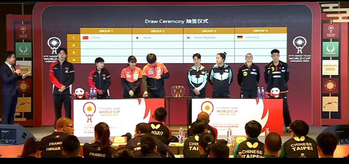 11月29日王楚钦在抽签仪式中发言:混团入奥后,参赛的意义不同了,压力更大! 成都混团世界杯11月29日, 举行了第一阶段小组抽签仪式, 王楚钦表示: 以前参加混团感觉比较新鲜, 成都的赛场氛围也很棒, 设施比较完善, 但今年是混团入奥的第一年, 再次参赛, 感觉混团的意义不同了, 压力更大, 责任更重…….” 抽签结果出炉, 第四组是德国法国 罗马尼亚和巴西, 雨果夫妇没来,巴西没戏了, 德国和法国一定出线, 国乒和港队分在一起, 港队加油👏, 第三组也有点紧张, 韩国,台北,瑞典,美国, 莫雷加德没参加, 瑞典没戏了, 韩国和台北一定非常激烈! 预测一下出线小组: 中国,港队,日本,印度, 韩国,台北,德国和法国!
