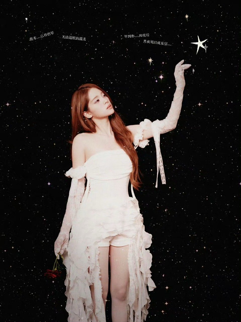 欧阳娜娜白裙红玫油画感 玫瑰主题大片甜度超标!白裙衬红玫+星空背景,浪漫氛围感拉满,妥妥行走的油画少女~
