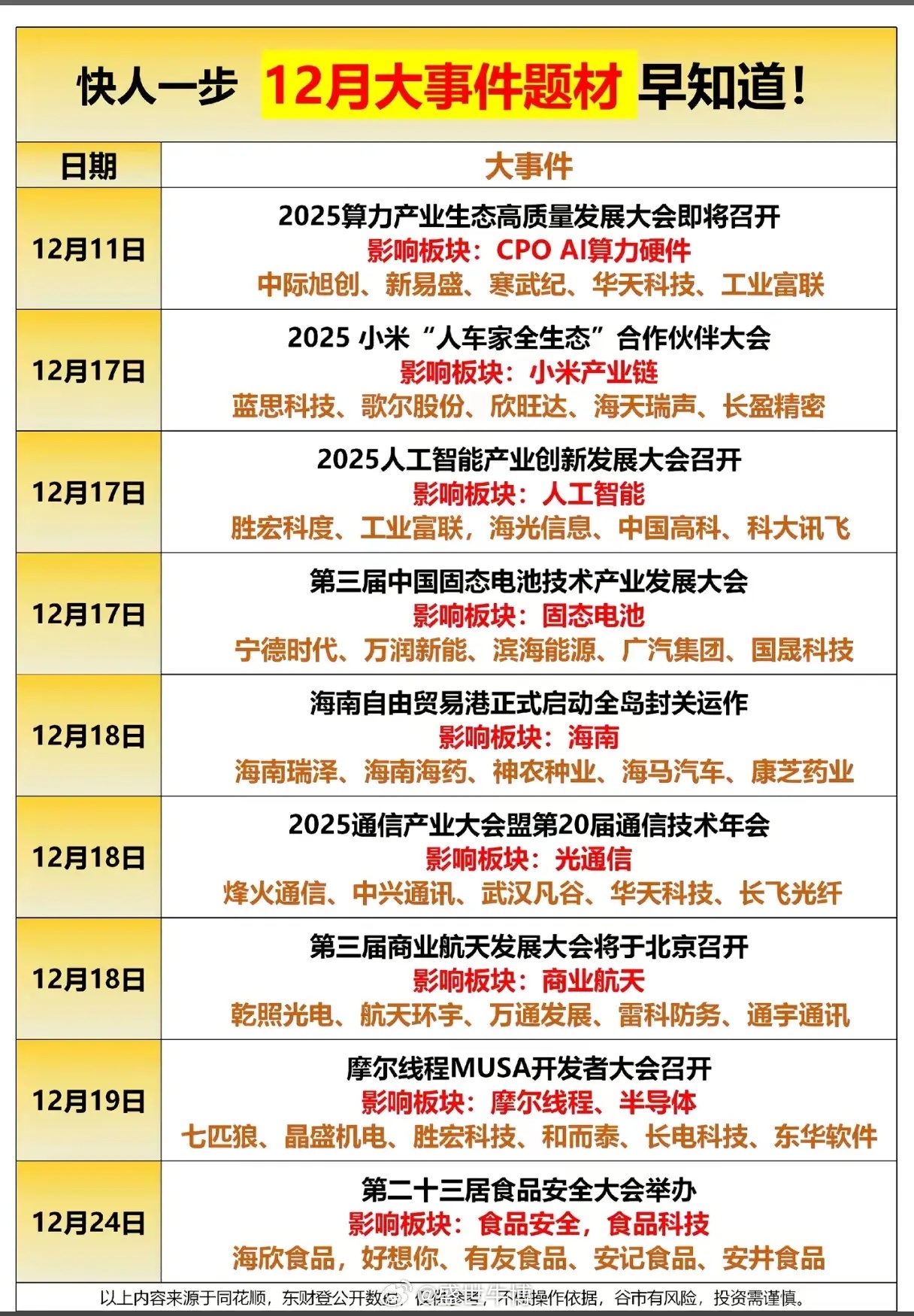 12月大事件扎堆:AI、脑机、海南封关,哪些能真正改变你的钱袋与生活?当你还在纠结年底买什么年货,12月的行业风暴已悄然袭来——从北京的“人工智能+”产业大会,到上海的脑机接口未来产业集聚区,再到海南全岛封关运作,每一件事都不止是“行业热闹”,更是普通人能摸到的机遇。12月1日开幕的AI大会,不仅要发布《智能体发展报告》,更要打通“技术研发—产业应用”闭环:你的手机客服可能换成AI数字员工,企业采购的工业软件也将更智能,而特发信息、蓝色光标这类企业的技术落地,正让AI从“概念”变成你我日常的效率工具。更颠覆认知的是脑机接口:上海12月4日的大会与10日启动的产业集聚区,已瞄准“瘫痪患者脑控设备”“精神疾病数字疗法”等场景,创新医疗、三博脑科的设备正从实验室走向临床,未来或许能让渐冻症患者通过意念发消息——这不是科幻,而是2030年要实现的“百亿赛道”。最贴近生活的,当属12月18日海南封关:“零关税”让进口数码、药械便宜30%,岛内居民在家门口就能买免税化妆品,外资还能通过海南QFLP基金直投A股。你不用出国,就能用更低成本享受到国际医疗、教育资源,而海南瑞泽、神农种业等企业的业务扩张,也藏着消费与投资的新空间。这些不是“资本游戏”,而是技术、政策落地的“民生红包”——当你刷着AI生成的短视频、用着脑机设备控制家电、在海南买着平价进口货时,12月的这些大事,早已成了改变生活的“日常”。