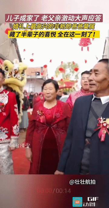“这喜公公太敞亮了!”山东烟台,一场婚礼上,平时比较严肃的新郎父亲“不按常理出牌”,用他发自内心的、近乎“抢戏”的激动与喜悦,成为了整场仪式中最耀眼、最可爱的“男主角”! 来源:【烟台广播电视台】 当司仪按照流程,高声问道:“儿子结婚了,您这个心情怎么样?” 这位父亲没有像预想中那样,只是微笑着点点头。取而代之的,是一声中气十足、响彻全场、带着当地口音的——“高~兴~激~动~!” 这一声,像一颗投入平静湖面的石子,瞬间在现场漾开了欢乐的涟漪。宾客们先是一愣,随即爆发出善意的哄堂大笑和热烈掌声! 这还没完。司仪或许也被这份赤诚感染,继续逗趣地问道:“你儿媳妇长得好看,还是你媳妇长得好看?” “好看,都好看”。话还没问我,老父亲就已经开始抢答了。那声音再次拔高了一个度,斩钉截铁,没有丝毫犹豫,脸上绽放的笑容像秋日丰收的果实,饱满而灿烂。他甚至还用力地挥舞了一下手臂,那股子自豪和满足感,几乎要溢出屏幕! 事后,在新人敬茶环节,儿媳妇也是非常大气的改口叫了一声“爸爸”,喜公公听到后,更是响亮的应了一声“哎”,可能是太过激动,又或者是有些紧张,在司仪的提醒下,喜公公立即起身掏出了一个红包,递到了儿媳妇手里! 婚礼上的这一幕被网友发到网上后,网友们纷纷被这一幕打动! “这才是婚礼该有的样子,真情流露,比任何彩排都动人!” “看到叔叔这么开心,我隔着屏幕都笑了,这家人一定特别和睦!” “这声‘高兴’里,包含了多少年的养育和期盼啊!” 这位可爱的父亲,他或许不懂什么叫表情管理,也不在乎是否要维持所谓的“长辈威严”! 在儿子人生最重要的时刻,他选择将内心翻涌的情感毫无保留地倾泻而出。他的每一次大声应答,都不是简单的配合流程,而是一次郑重的宣告,是对儿子成家立业的无比骄傲,是对迎来一位好儿媳的真心认可,更是对自己半生辛劳在此刻化作圆满的如释重负! 这场婚礼,因为这位最高兴的爸爸,变得格外真实、温暖且令人难忘。他让我们相信,最动人的瞬间,永远来自于未经雕琢的真情!