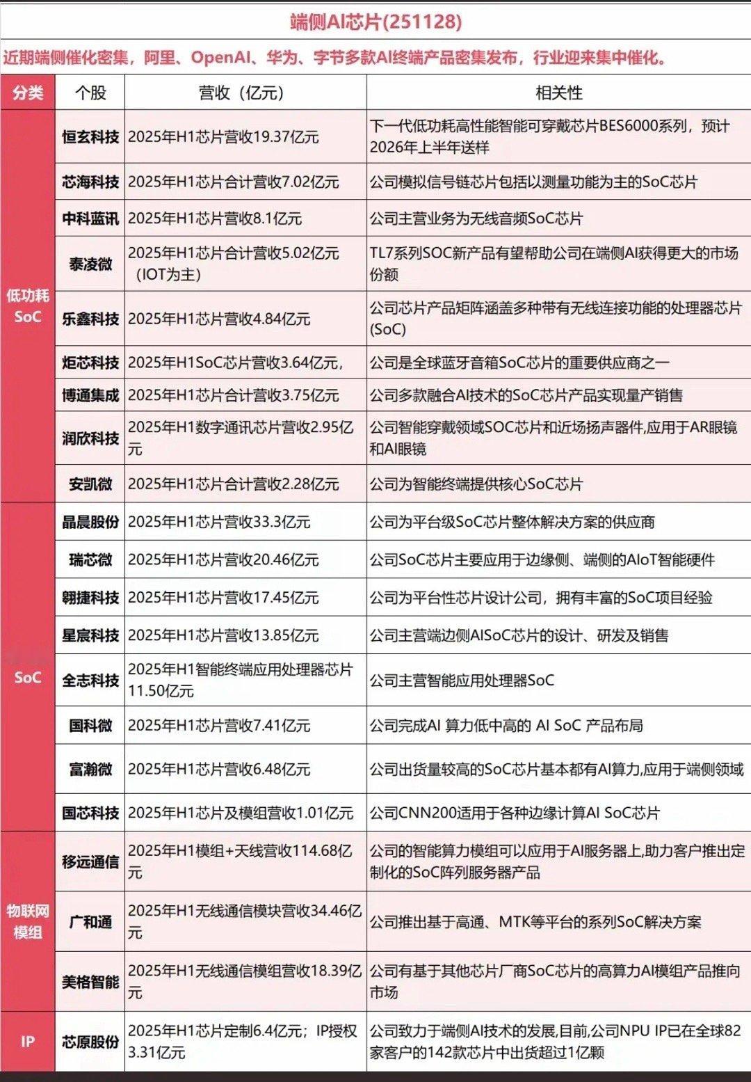 端侧AI芯片!近期端侧催化密集,阿里、OpenAI、华为、字节多款AI终端产品密集发布,行业迎来集中催化。