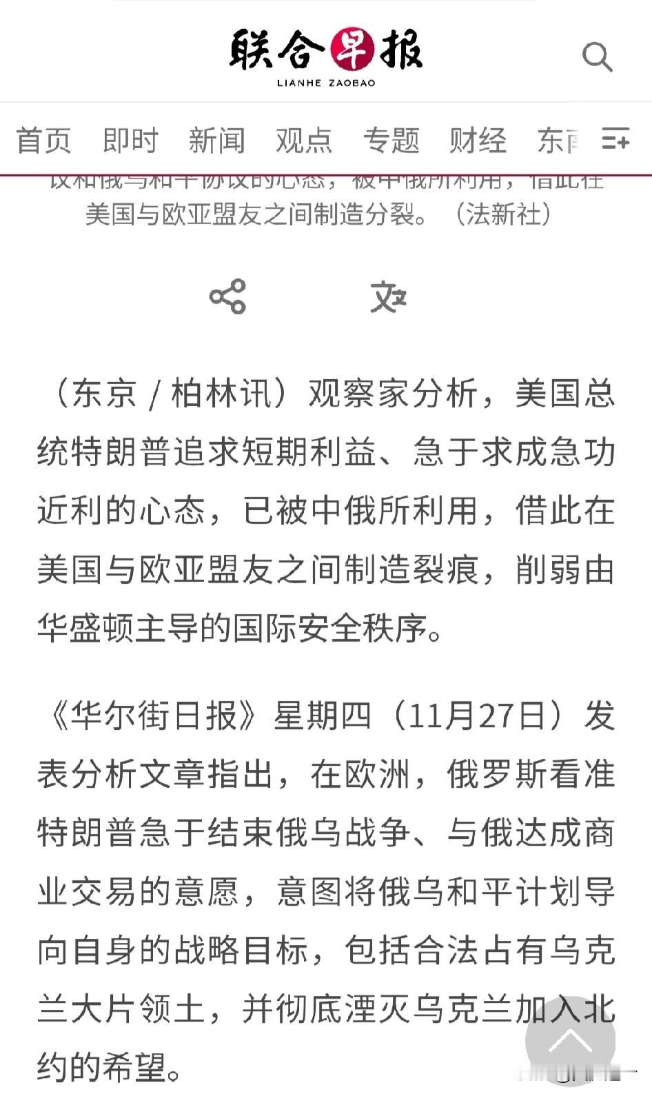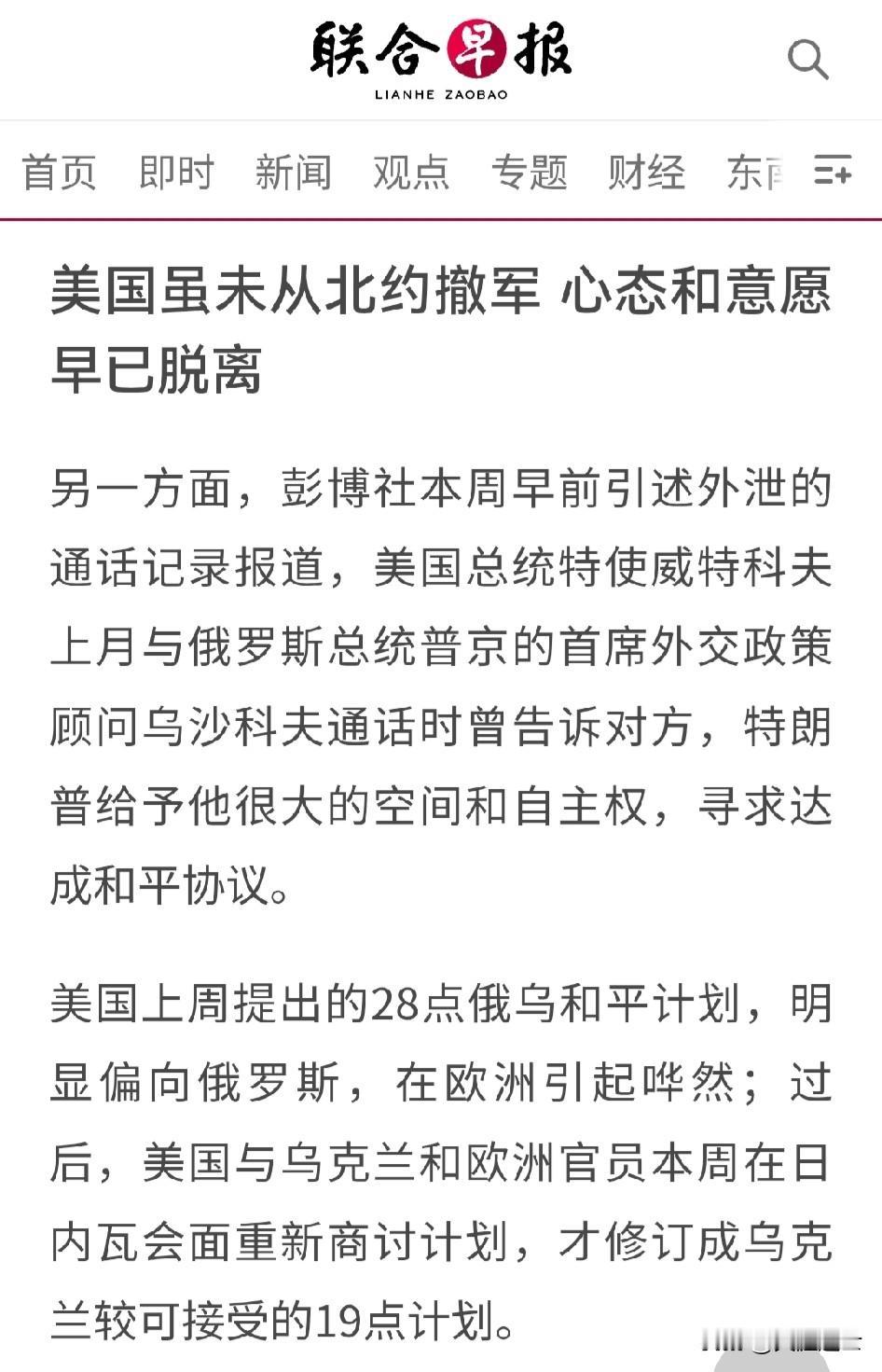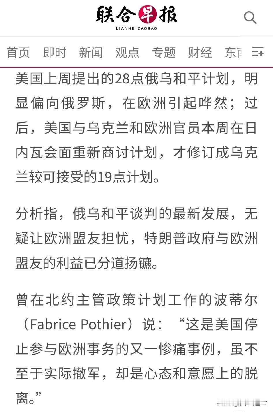 据《华尔街日报》报道,特朗普急欲达成中美贸易协定和俄乌冲突和平协议的想法被人利用,借此在美国和他的欧洲以及亚洲盟友之间造成分裂。 美国上周提出的28点俄乌和平计划,明显偏向俄罗斯,导致他的欧洲盟友们一片哗然。之后美国又与欧洲和乌克兰官员在日内瓦会面重新商讨计划,这才修订成乌克兰接受范围之内的19点计划。 也有分析指出,美国和俄罗斯的排除欧洲盟友的和平谈判给他的欧洲盟友们造成很大的担忧,“虽不至于实际撤军,却是心态和意愿上的脱离”。