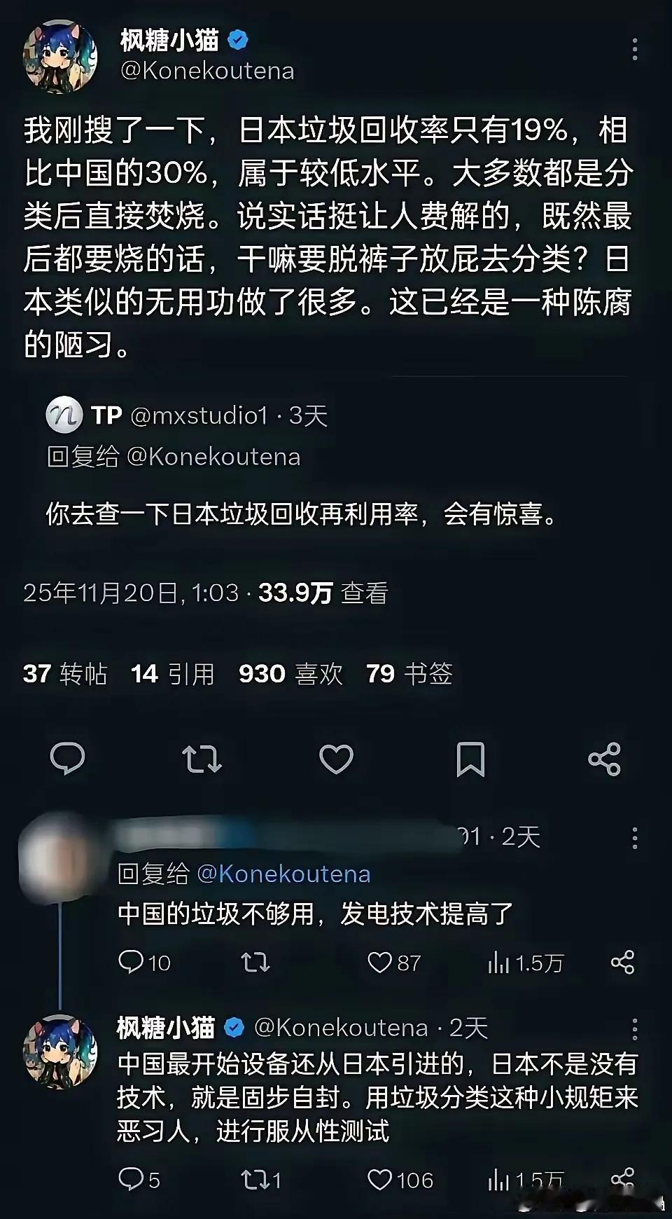 所以日本的垃圾分类不是为了环保,而是为了疲民,劳民,累民。