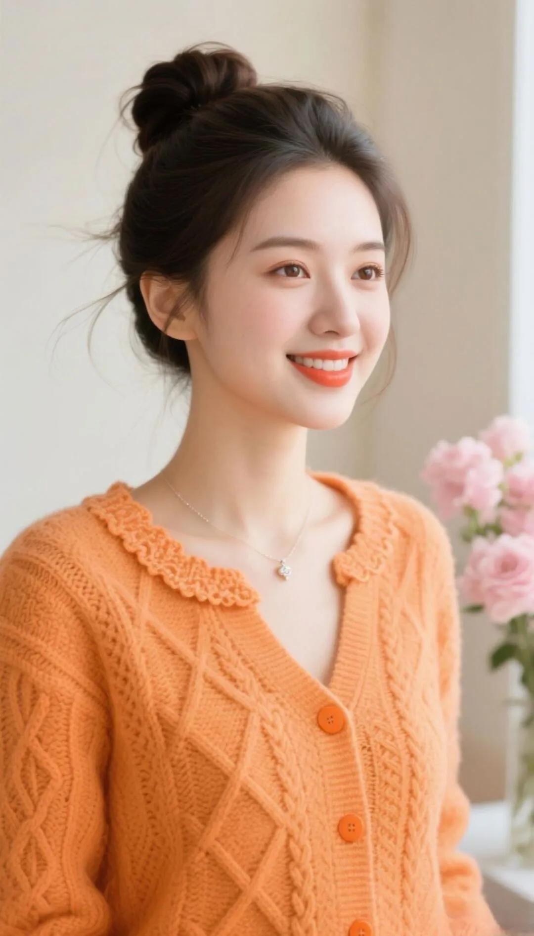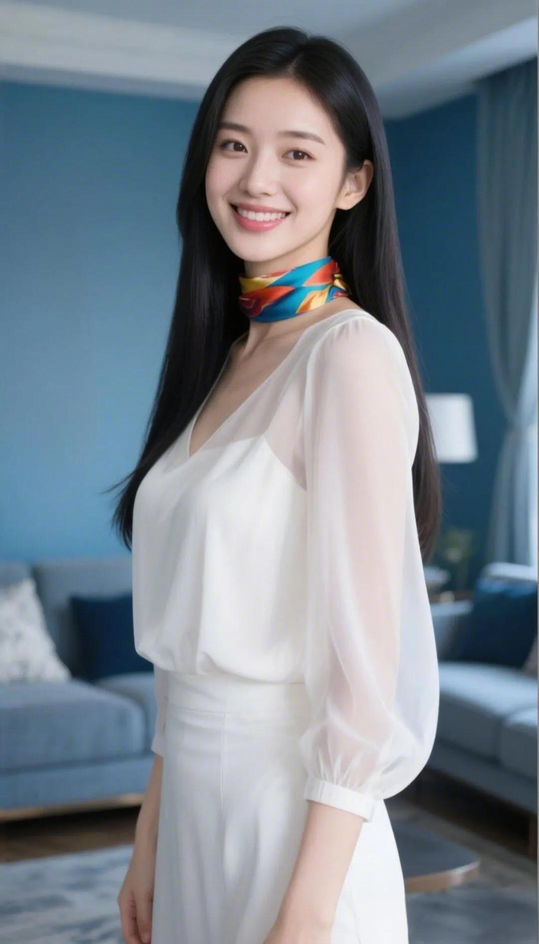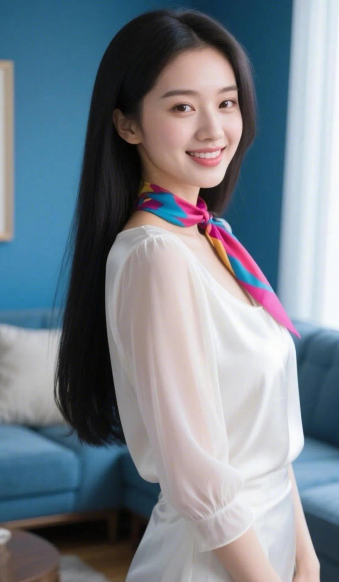 优雅蓝白丝巾,甜美笑容,气质满满!🌟✨