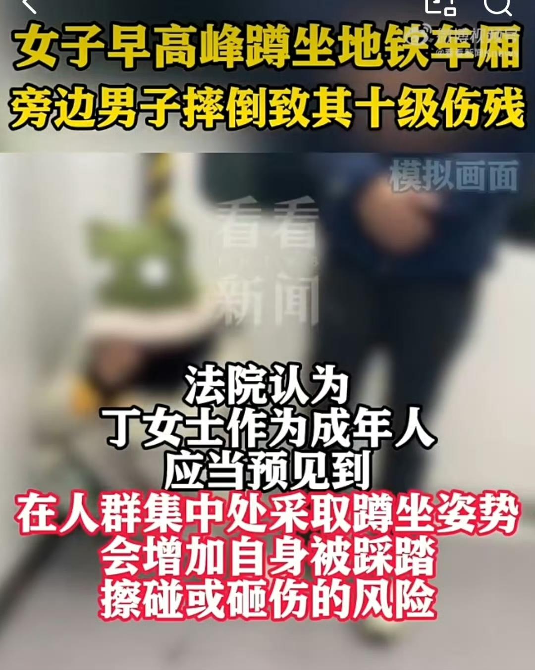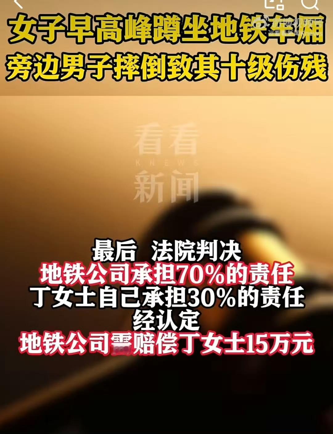 上海地铁1号线上发生的一桩意外,最近引发了不少人讨论,核心就是女子蹲坐车厢被压骨折,地铁最终赔了15万。事情发生在早高峰,那会儿地铁车厢里挤得满满当当,丁女士坐地铁的时候突然觉得身体不舒服,实在撑不住就蹲坐在了车厢地板上。谁也没想到,就在地铁进站的时候,列车稍微晃了一下,站在她旁边的一个男乘客没扶扶手,一下子没站稳就摔了下来,正好重重压在了丁女士身上。这一压可不轻,丁女士当场就感觉腰部剧痛,后来送到医院检查,确诊是腰椎骨折,经过专业鉴定已经构成了十级伤残,日常生活和工作都受到了不小的影响。 事后,丁女士把地铁公司告上了法院,要求赔偿医药费、误工费等各种费用,一共索赔27万元。她觉得,地铁公司没有保证列车平稳运行,而且早高峰客流那么大,也没做好客流控制,导致那个男乘客没地方抓扶手才会摔倒,所以地铁公司得负责任。而地铁公司这边有不同的说法,他们称列车运行的时候,车厢里一直循环播放“列车运行,请站稳扶好”的安全提示,已经尽到了告知义务,是丁女士自己不顾提醒,在人挤人的早高峰蹲坐在地上,才导致了意外发生,认为丁女士自身存在重大过失,不应该由他们赔偿。 法院审理的时候,仔细查看了事发时的监控录像,发现地铁确实播放了安全提示,列车进站时也确实有晃动,但当时其他没扶扶手的乘客只是轻微晃了晃,并没有摔倒,只有丁女士旁边的男子摔了。结合这些情况,法院最终做出了判决:地铁公司承担70%的责任,赔偿丁女士15万元,丁女士自己承担30%的责任。法院认为,丁女士作为成年人,应该能想到在人群密集的地铁车厢里蹲坐,会增加被踩踏、压伤的风险,自身确实没尽到谨慎注意的义务,这属于一般过失。但考虑到当时她是因为身体不适才这么做,也算不上对自己安全严重不负责任,所以不是地铁公司说的重大过失。 这起案件的判决,其实是平衡了地铁公司和乘客的责任。地铁作为公共交通运营方,有义务提供安全的乘车环境,包括尽量平稳驾驶、合理控制客流、提供足够的安全设施,所以要承担主要责任。而乘客在享受公共服务的同时,也得有基本的安全意识,就算身体不舒服,也得尽量选择相对安全的方式保护自己,这也是为什么丁女士要自担一部分责任。这个事儿也给大家提了个醒,早高峰坐地铁本来就拥挤,不管是运营方还是乘客,都得多留意安全,才能避免类似的意外发生。 来源:看看新闻