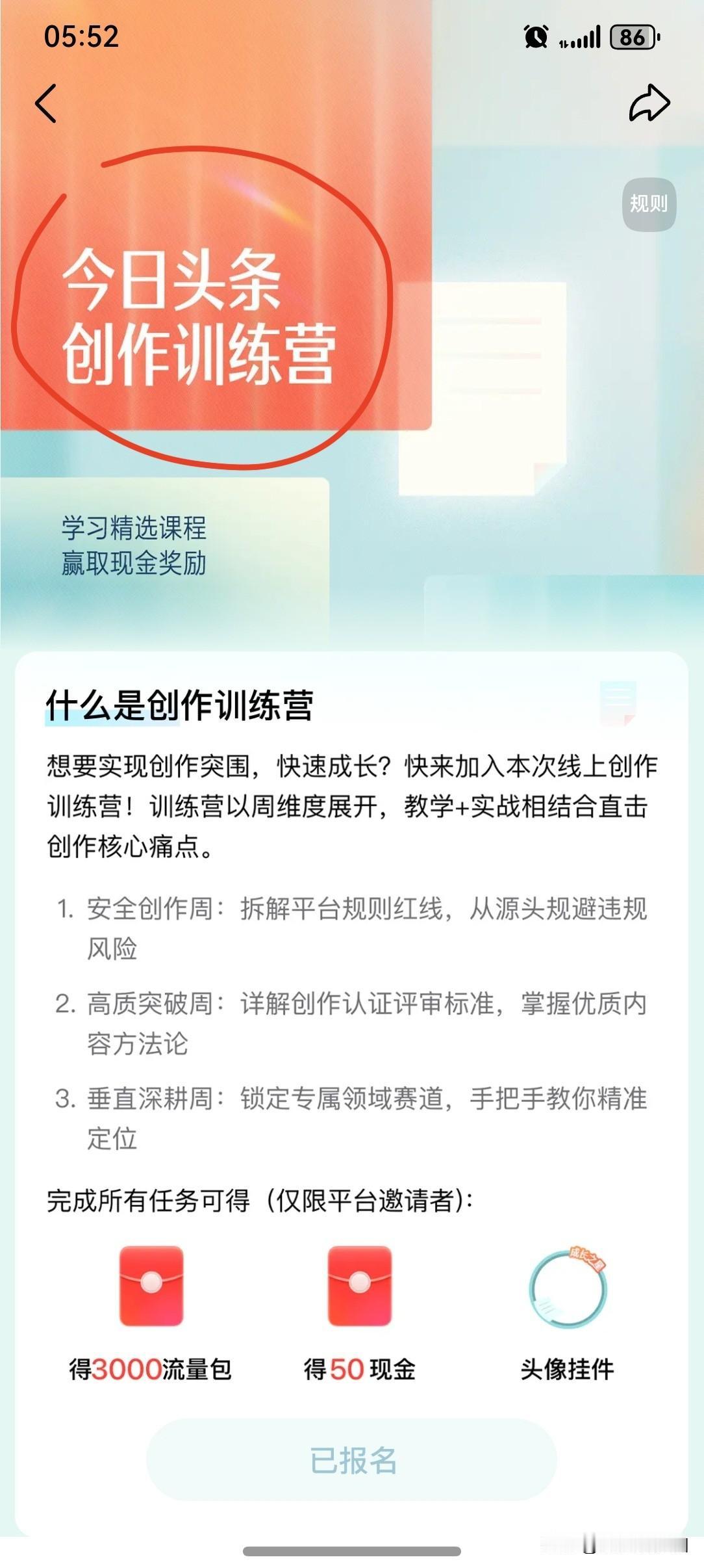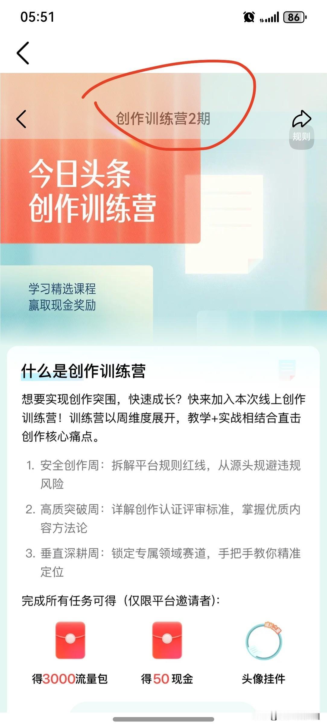 原来今日头条创作训练营真的有两个活动,分别是创作训练营1期和创作训练营2期。之前
