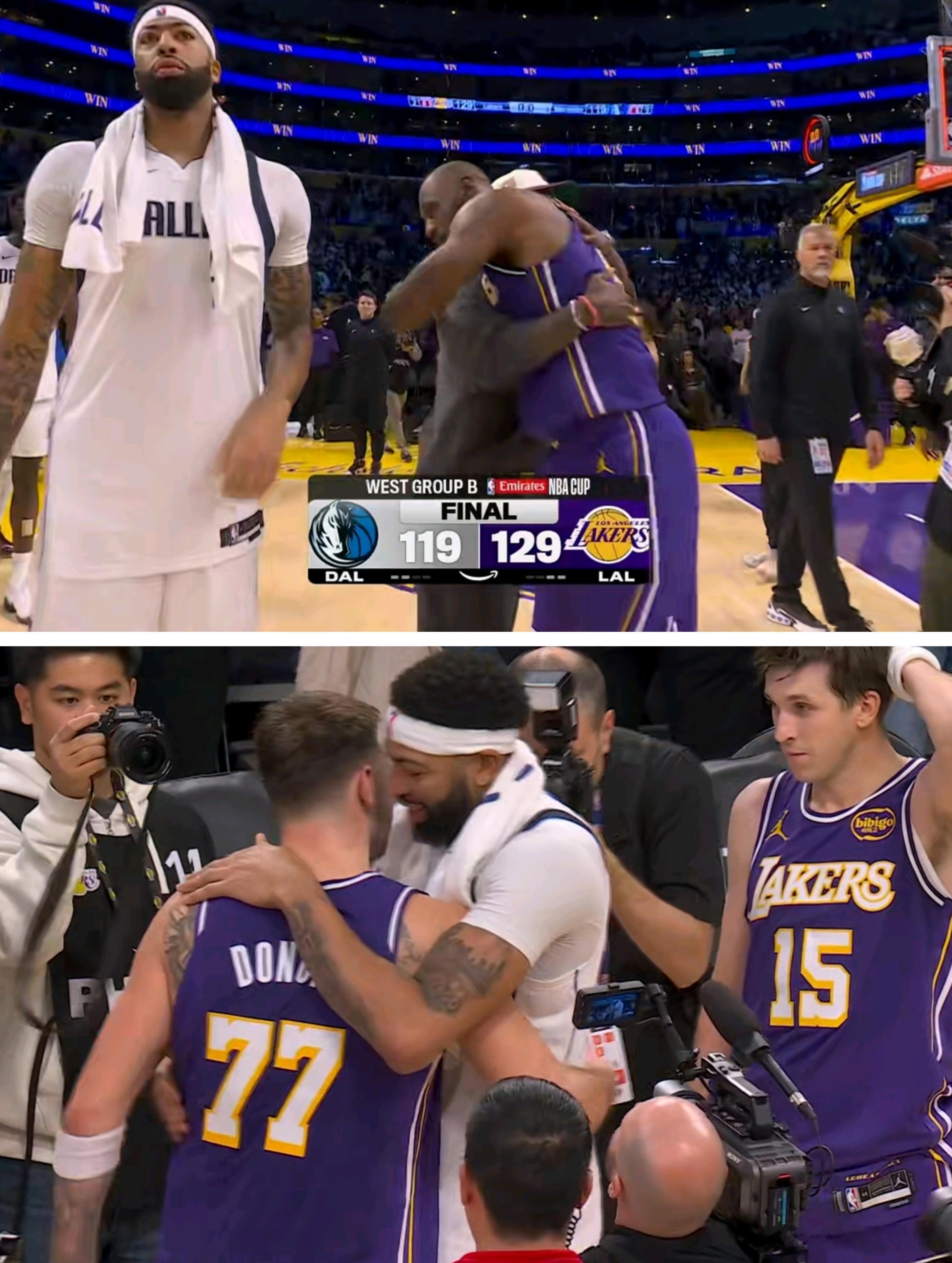 胜利!湖人在今天这场激烈的NBA杯小组赛中,以129-119战胜独行侠,NBA小组赛四战全胜堪称完美!湖人这场胜利不仅展现了强大的进攻火力,更体现了球队全新的战术体系。掘金在今天居然爆冷输给了马刺!接下来,湖人将在四分之一决赛中迎战马刺,瓦塞尔湖人侠啊!不过以目前湖人的阵容也不怕他矿工队!来说说本场比赛,湖人在这场比赛采取了独特的"反潮流"战术,就是放弃依赖外线投射,主攻独行侠禁区。本场湖人全队篮下命中率高达68%,在独行侠禁区拿了52分!完全打穿了独行侠的防守体系。要知道独行侠可是全联盟盖帽率第二的球队!不过湖人本场的三分投得神准!全场命中了18记三分球!内外开花成为取胜的关键。雷迪克主教练在赛后表示:"我们清楚自己的优势在哪里,今晚的执行力近乎完美。"小里无疑是本场最耀眼的明星了,他全场轰下38分8篮板3助攻,投篮15投12中,命中率高达80%。三分线外8投6中!他在第二节独得14分,帮助湖人堵住独行侠反扑趋势。"今晚的感觉特别棒,"里夫斯在赛后采访中说,"队友们不断为我创造机会,我们打出了美妙的团队篮球。"你的里皇无限猖狂!东契奇同样发挥出色,贡献35分5篮板11助攻的全面数据,他在进攻端的组织盘活让湖人打得很流畅,今天在三分线外也命中了4记三分球!他在近五场比赛能砍下了37.8分8.7篮板8.4助攻的准三双数据!效率也极高!值得一提的是,詹姆斯复出后的四场比赛中,逐渐找到了与队友的最佳配合方式,本场他也送出7次助攻,在复出的四场比赛里,他一共送出了33次助攻,并且还能拿下16.5分!他跟里夫斯东契奇的三人的默契配合以及明确的分工合作成为了湖人的基本盘,他们三人可以说是湖人的“三板斧”了!在内线较量中,艾顿今天复出拿下17分8篮板2盖帽全面压制了戴维斯,投篮9投8中更是效率惊人!艾顿不仅在得分和篮板方面表现更佳,他在防守端的威慑力也完全不输给浓眉,谁还不是个状元呢对吧!湖人还是得有艾顿在,内线才有优势。比赛的转折点出现在下半场!独行侠在上半场结束时还以62-60保持领先,然而在下半场湖人在第三节单节轰下38分,而独行侠的防守体系在这一节彻底崩溃。八村在这一节命中了两记关键三分!第三节结束湖人以98-94领先至第四节,在第四节又是八村塁,他再次命中两记关键三分,其中一记让湖人领先至7分,随后东契奇联手队友主宰了第四节后半段,比赛也因为失去了悬念!基德在赛后坦言:"我们在下半场失去了防守专注度,让对手打出了太多轻松的内线得分。"独行侠这边安东尼戴维斯刚复出,有出场时间限制,只打了28分钟,拿了12分5篮板5助攻3盖帽,基德今天把他放在了五号位,估计是他最近体重涨了不少的原因!浓眉健康打球的话,还是有实力的,今天在防守端就送出了3记火锅!再好好调整吧!在今天比赛结束后,看他一脸沮丧,是不是很想念湖人这片地板啊!在比赛结束后,双方也非常友好,分别拥抱示意,詹姆斯跟欧文来了个深情拥抱!东契奇浓眉寒暄了几句,湖人下一场杯赛要面对马刺,你觉得湖人能拿下吗!艾顿詹姆斯东契奇洛杉矶湖人里弗斯