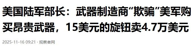 美军黑鹰直升机的控制旋钮,成本仅15美元。军火商定制报价高达4.7万美元,民用同款只需零头。这样的离谱案例还有很多,1280美元的电热壶。17万美元的“战术手推车”,中国同款才2000元。甚至一瓶普通瓶装水,都要花13.37美元采购。 武器装备价格更是疯狂飙升。“毒刺”防空导弹1991年卖2.5万美元。如今涨到40万美元,涨幅超15倍。“标枪”反坦克导弹,每枚价格从7.8万美元。涨到21万美元,发射器价格也翻了一倍。 “爱国者”防空系统更夸张,1991年每套5500万美元。现在报价高达10.9亿美元,导弹单价从60万。涨到410万美元,溢价幅度令人咋舌。即便是翻新的M1主战坦克,单价也达1066万美元。 这些天价背后是深度利益捆绑。50多名国会议员编写国防预算。同时交易军火商股票,订单落地就赚差价。军工巨头每年花费近1.4亿美元游说。还向议员提供巨额竞选捐款,打通利益链条。 上世纪90年代后,美国50多家军工企业。合并成五大巨头,形成垄断格局。五角大楼却裁掉十几万监督人员。议价和监管能力大幅下降,让军火商有机可乘。 新财年国防法案的条款更离谱。扩大商业采购界定范围,免除军火商核证成本。允许使用未经认证的定价数据,相当于默许抬价。“星座级护卫舰”耗资20亿仅完工12%。项目被叫停后,涉事方无人担责,举报者还遭辞退。 美国2026年军费计划达1万亿美元。这些资金大多流入军火商口袋。他们并不重视生产线升级,很多炮弹生产。仍靠半手工操作,设施严重老化。即便如此,俄乌冲突后,他们仍通过军援。让31个州的117条生产线开足马力。 军火商还通过战争持续获利。加勒比地区军事集结中,MQ-9无人机。获得141亿美元维护合同,“战斧”导弹补充订单。让雷神公司赚得盆满钵满。他们还推动盟友淘汰旧武器。再采购美国新装备,进一步扩大市场。 看似强大的美军军费,实则充满泡沫。天价采购没有换来同等战力提升。反而让“史密斯专员”中饱私囊,形成恶性循环。