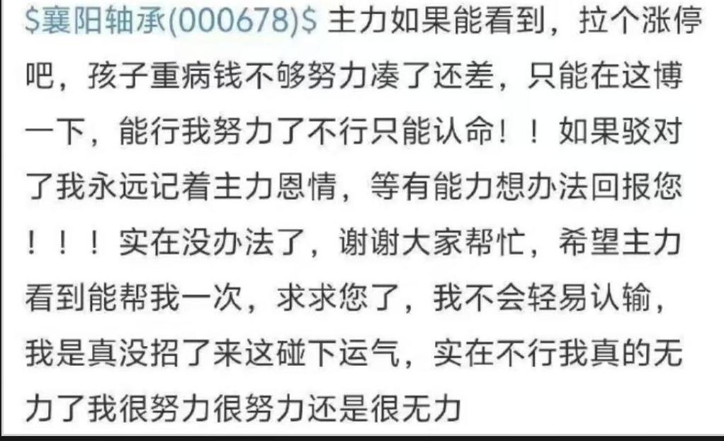 襄阳轴承的侠客涨停事件,这故事听起来简直像一部股市武侠小说。 十一月二十七号,有一位股民在某个股票论坛上发了一个非常揪心的求助帖。 他说自己重仓了襄阳轴承这只股票,但现在孩子生了重病,急需用钱,救命股票却被套住了。 他走投无路,只能恳求市场上的主力资金和广大股友能不能行行好,把股价拉一个涨停板,让他能解套凑钱给孩子治病。 他在帖子里还特别真诚的说,会永远记得这份恩情。 就在第二天十一月二十八号,襄阳轴承的股价还真就来了一个旱地拔葱式的直线涨停,这一下整个市场都炸锅了。 股吧里到处都是感谢主力,好人一生平安的留言,感觉咱们a股市场瞬间充满了侠义和温情。 那么问题来了,这真的只是一次纯粹的人道主义救援行动吗? 咱们扒开表面看看里面更深层的逻辑。 第一层,从上市公司基本面看,它其实配不上这个涨停。 说句实在话,炒股要看公司业绩,这是根本对吧? 但襄阳轴承这家公司它的扣非净利润已经连续亏了十三年了,最新的财报显示亏损还在扩大,而且公司短期债务压力也很大。 说白了,从基本面来看,它是很难支撑起这样一个突然的涨停的。 公司之前也多次澄清说自己暂无机器人轴承的市场应用,但市场上还是经常拿它当机器人概念来炒。 第二层,从资金和市场层面看,这是情绪与资金的完美共振,龙虎榜数据不会说谎,当天推动涨停的主要是机构席位和知名游资,他们联手买入了上亿元。 你说这些市场上的聪明钱真的是来做慈善的吗?更可能的情况是,他们敏锐地捕捉到了这个极具传播力的情感故事。 这个故事带来了无与伦比的市场关注度和跟风盘,他们顺势而为,用一笔资金点火就能吸引大量的散户跟着冲进去,从而达到四两拨千斤的拉升效果,这更像是一次精准的情绪套利。 第三层,从投资心理层面看,我们都被故事牵着走了,这个故事为什么有这么大的魔力? 因为它触动了我们内心最柔软的地方,同情心和正义感,这在行为金融学里就叫叙事经济学。 一个好听的故事,其传播力和对人们决策的影响力远远超过枯燥的财务报表。 再加上股价一涨,很多人害怕错过的心态就上来了,形成羊群效应,理性思考就被抛到脑后了。 那么,这个神奇的事件能给我们普通投资者带来哪些启发呢? 第一,要警惕故事的诱惑,资本市场里最动人的往往也是最危险的。 当你被一个故事感动的热泪盈眶,准备下单的时候,一定要强迫自己冷静下来,回到公司的基本面上来。 动人的故事可以是价格的催化剂,但绝不能成为你买入的核心理由。 第二,要认清炒作的本源对于这种脱离基本面的炒作,我们心里一定要有根弦儿,这就是情绪的脉冲,来的快去的也快,如果你不是波段高手,千万不要轻易去接这最后一棒。 否则很可能侠客没当成自己,反而成了接力侠。 第三,保持独立的理性在股市里克服情绪的干扰是我们终身的修行。 不要因为一个悲情故事或者市场的集体狂欢,就打乱自己的投资节奏和策略。 最后咱们说点带温度的,这个事件最让人感慨的是,它让我们看到了资本市场里罕见的人情味,这份来自陌生人的集体善意非常珍贵。 但另一方面,我们也要清醒的认识到,股市从根本上说它不是慈善场,把救命的希望寄托于股价的波动和市场的善意,这本身是一件非常危险且不可复制的事情。 所以总结一下襄阳轴承这个事儿,是一场情绪驱动与资金投机共同导演的精彩大戏,他很温暖,也很残酷,它告诉我们在股市里,我们可以心怀温暖,但手必须保持冷静。