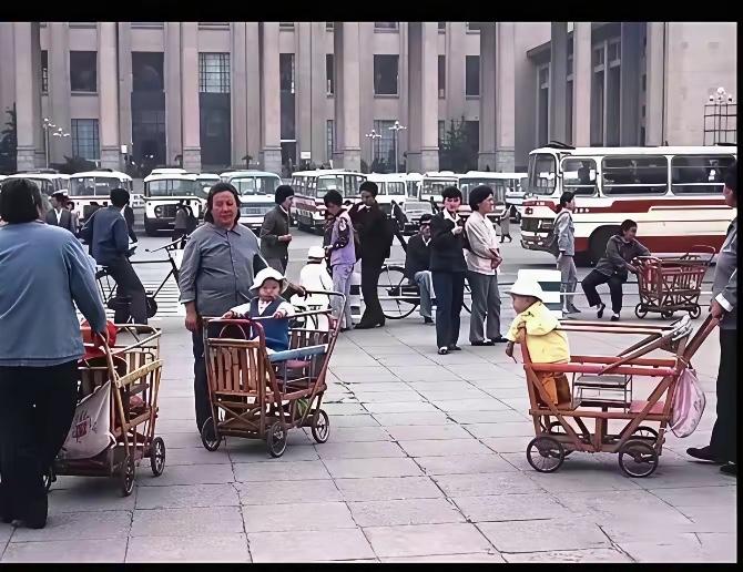 北京人,看到这张照片,是不是觉得特别亲切?多少人的美好回忆啊!记得那时候,有很多给游客照相的摊位,好像都是王府井照相馆或者是大北照相馆的师傅给拍照片。当年坐在小竹车里的孩子,现在应该都已经40多岁了吧?