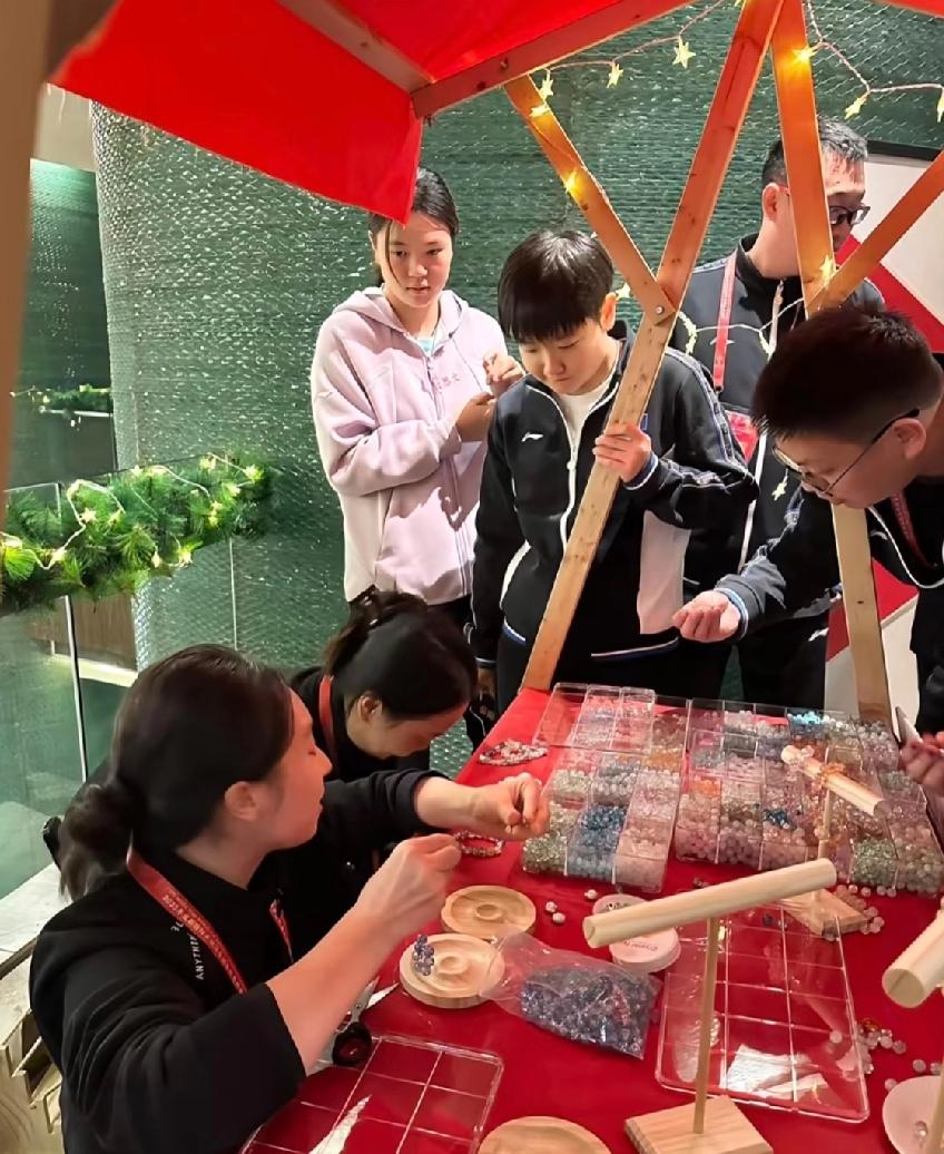 莎莎又出“洋相”了, 想不到她闷不做声的, 竟然拿着自己的名牌四处晃悠, 想想这场景就觉得好玩。 混团晚宴结束之后, 莎莎竟然把桌子上的名牌拿着四处晃悠, 没错写着她的名字就是她的。 她停留在穿手串的摊位, 立马被那一颗颗五颜六色的珠子吸引, 赛场下她就是个普通的小女孩, 手串谁不喜欢呢? 给她喜欢都给她。 好多球迷调侃, 第一眼看到那张图, 以为莎莎扛着根棍子四处晃悠。 哈哈,正解图二来了, 原来是摊位上的架子, 正好让她“抱”在怀里了。 莎莎真是到哪里哪里就是乐趣, 果然莎莎看到什么都好奇, 看到什么都要看个明白, 真是太可爱了。 (图片源自于网络)