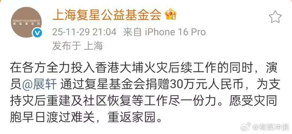 张凌赫香港火灾捐赠张凌赫给香港捐款张凌赫给香港捐款,不错,