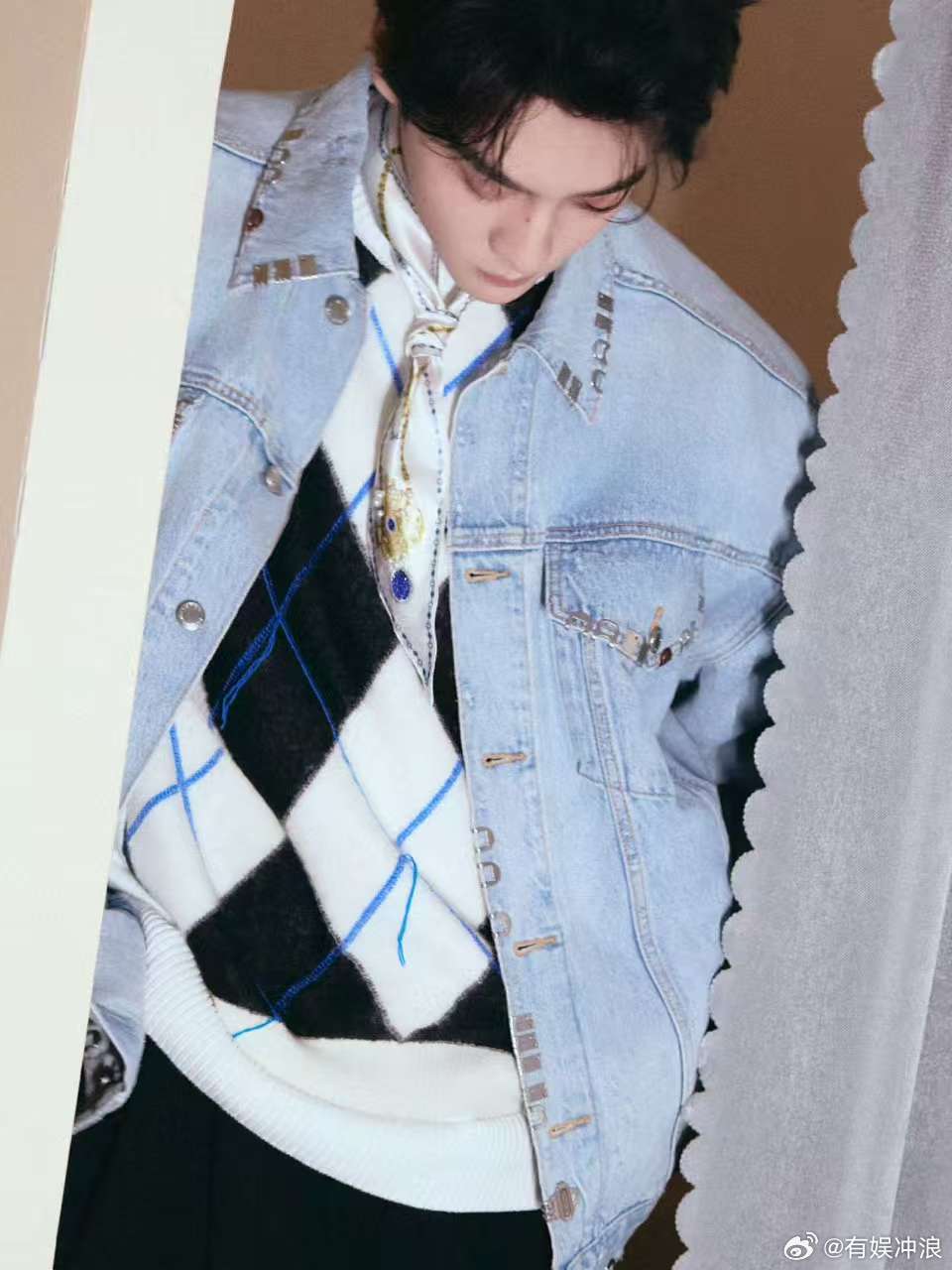 田栩宁金属牛仔田栩宁牛仔搭丝巾田栩宁牛仔搭丝巾,时尚表现力拉满,