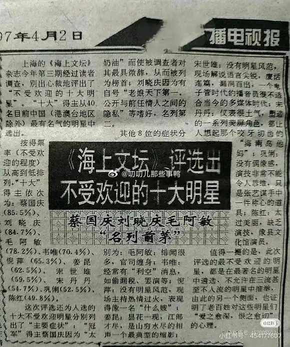 97年最不受欢迎的十大明星~