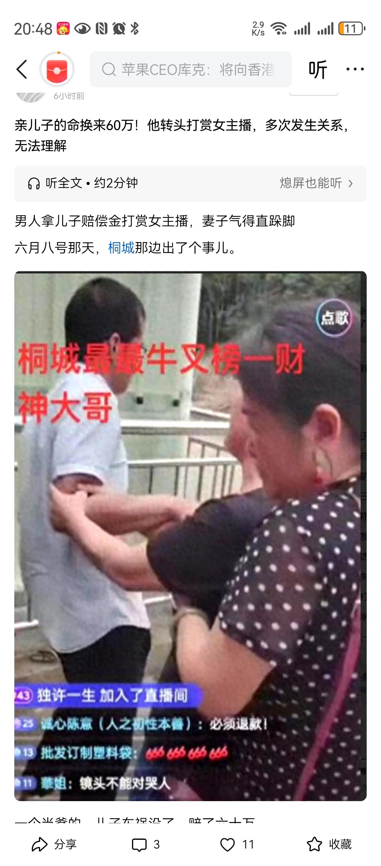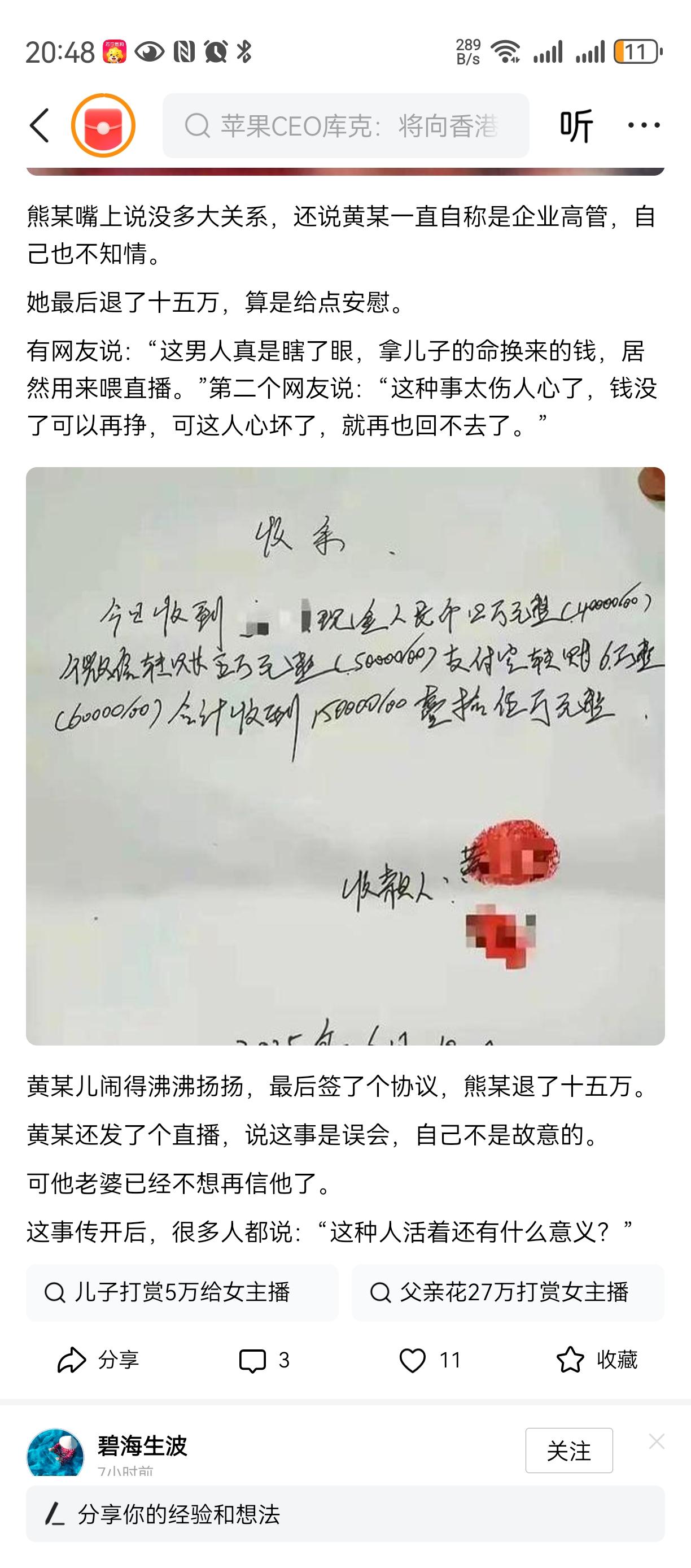 父爱的沦丧! 这个人渣父亲, 拿着儿子命换来的赔偿, 去直播间打赏女主播并发生关系, 六十万全部打了水漂父爱 可怜老母亲一分钱没拿着钱, 通过丈夫要回了十五万!直播打赏主播 这真的是人性的却沦丧! 人渣网络打赏纠纷