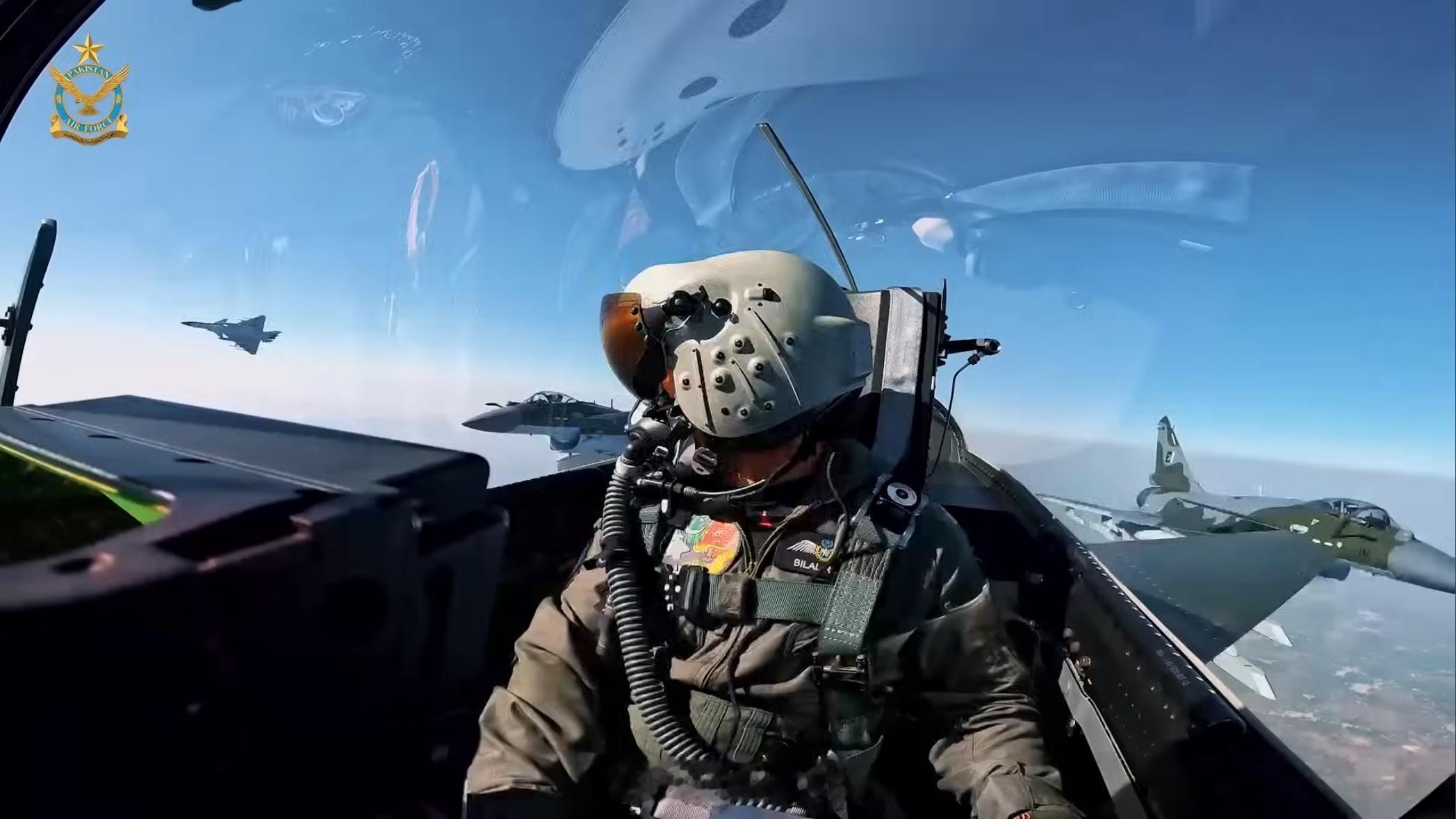 烽火问鼎计划 J-10CE座舱里面这个应该就是瞄准显示头盔的视觉跟踪定位装置吧。J-10C配备的是我军第二代瞄准显示头盔,头盔集成单目光学显示器、CRT像源和跟踪定位标识,与飞机显示设备单元和采用计算机视觉测量的跟踪定位单元配套使用。第二代瞄准显示头盔既能显示瞄准数据,又能显示飞行数据,从而增强飞行员的态势感知能力,显示视场为单目20°,可以引导大离轴角导弹的发射,提升飞机的战斗力。通过头盔的内外盔结构完成光学/定位组件在头盔上的安装和固定,头盔的重心、过载稳定性等较第一代瞄准显示头盔更优。