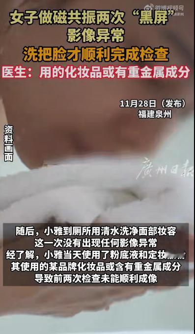 一位年轻姑娘做磁共振检查时,连续两次扫描都突然“黑屏”,机器里显示的面部图像糊成一团金属色,把医生都看懵了。直到她跑去厕所洗了把脸,第三次检查才顺利完成。这背后的原因,竟和她的日常妆容有关。 这位姑娘姓小雅,因为头晕去医院做头颅磁共振。检查前她按流程摘了首饰、脱了外套,连文眉的事都主动交代了(十多年前纹的,医生说早代谢掉了)。可当她躺进机器里,第一组扫描刚启动,医生就发现不对劲:她的面部图像上覆盖着大片金属伪影,就像有人往屏幕上泼了银粉,连皮肤纹理都看不清。医生赶紧叫停,追问了假牙、整形史,甚至怀疑她是不是偷偷戴了磁力耳钉,可小雅全摇头否认。 这时医生注意到她脸上化着淡妆,粉底液和散粉的痕迹还留在鼻翼两侧。抱着试试看的心态,医生让她去把脸洗干净。小雅用清水擦了擦脸,第三次躺回机器,这次图像清晰得能数清毛孔原来罪魁祸首真是化妆品里的“隐形金属”。 磁共振的原理是利用超强磁场让体内的氢原子“排队跳舞”,再通过射频信号捕捉它们的运动轨迹。但这个磁场对金属极其敏感,哪怕是头发丝粗细的铁屑,都能让图像“花屏”。医生解释,很多化妆品为了提亮肤色、增加光泽,会添加氧化铁、二氧化钛、氧化锌等金属氧化物。这些成分平时涂在脸上没问题,可一旦进入3.0T的强磁场(相当于地球引力的数万倍),就会像小磁铁一样被吸住,在图像上留下大片伪影。 小雅用的粉底液和散粉里,可能就含有这类成分。第一次检查时,金属颗粒在磁场中“乱舞”,把面部图像搅成了一锅粥;第二次她可能没擦干净,问题依旧存在;直到彻底卸妆,金属干扰消失,检查才成功。医生还提到,类似的情况他们遇到过不少:有人文眉残留的金属色素导致眉周模糊,有人涂了含闪粉的眼影,结果眼睛周围全是亮斑,甚至有人贴了含金属粉末的膏药,后背检查时出现大片伪影。 其实磁共振检查对化妆品的“容忍度”取决于检查部位。如果是四肢或腹部检查,脸上带点妆影响不大;但要是做头颅、颈部或面部扫描,化妆品里的金属颗粒就会直接干扰病变区域的成像,轻则图像模糊,重则误诊漏诊。医生建议,检查前最好用温和卸妆产品彻底清洁,尤其注意发际线、睫毛根部这些容易残留化妆品的地方;如果做过文身、文眉,一定要提前告诉医生;日常选化妆品时,可以看看成分表,避开氧化铁、二氧化钛这些“金属大户”。 爱美没错,但在健康面前,有些“美丽陷阱”还是得绕着走。毕竟,一张清晰的检查图像,可比脸上的光泽重要多了。 来源:九派新闻
