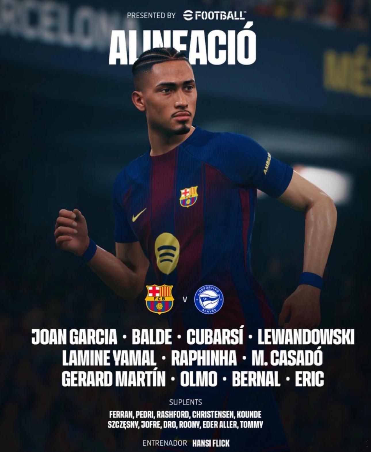 11月29日讯 今天23:15,西甲第14轮,巴塞罗那主场迎战阿拉维斯。赛前,两队首发阵容出炉。巴萨这边,佩德里伤愈替补待命,德容因家庭原因缺席。西甲巴塞罗那巴萨巴萨 巴萨首发:13-霍安·加西亚、3-巴尔德、5-库巴西、24-埃里克·加西亚、18-马丁、17-卡萨多、22-伯纳尔、20-奥尔莫、10-亚马尔、11-拉菲尼亚、9-莱万多夫斯基阿拉维斯首发阵容:1-西维拉、17-奥托、14-泰纳利亚、5-帕切科、24-帕拉达、8-布兰科、19-伦布雷拉斯、4-丹尼斯·苏亚雷斯、20-卡莱比、21-雷巴赫、15-博耶