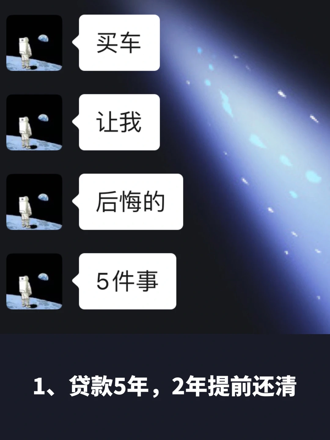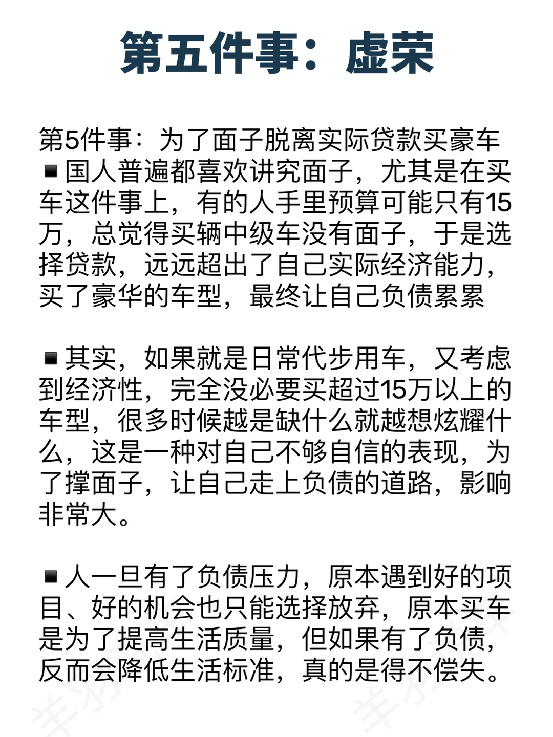 1⃣️车子就是一个代步工具,一定不要为了所谓的"面子"而超出自己经济能力去买"豪车",等事业有成,那时候直接入手真正的豪车,面子、里子全都有了。