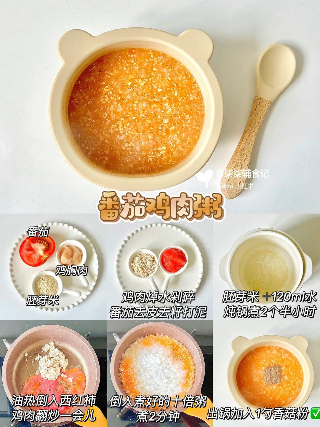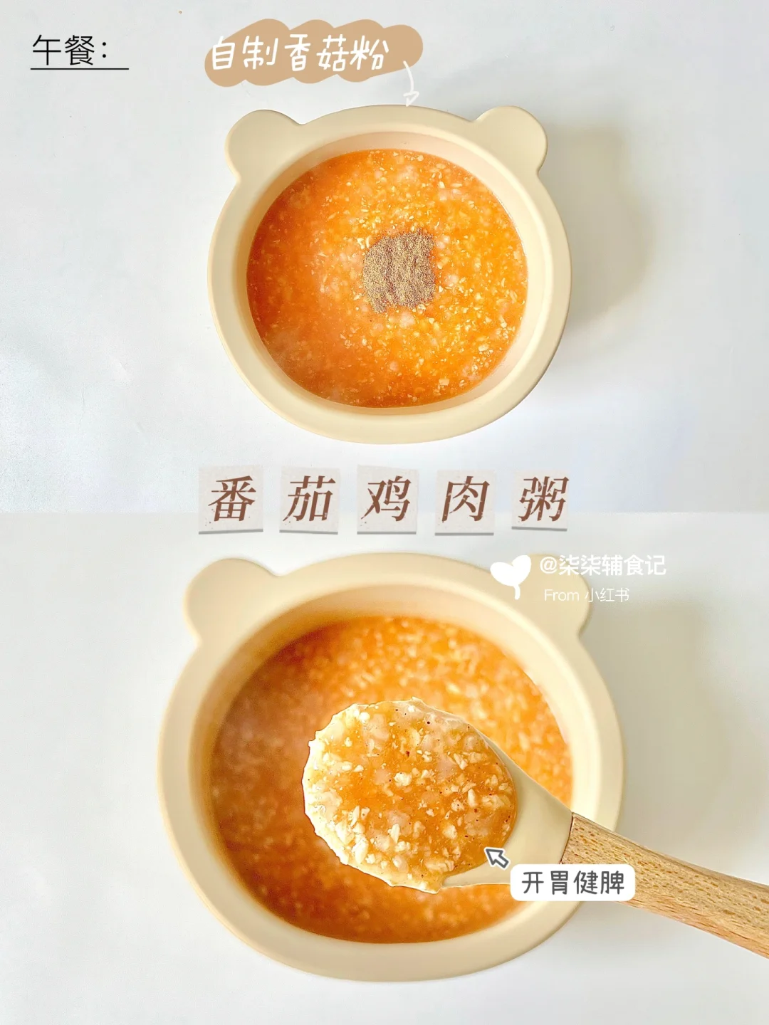 午餐番茄鸡肉粥,出锅加入一勺香菇粉,美味又提鲜