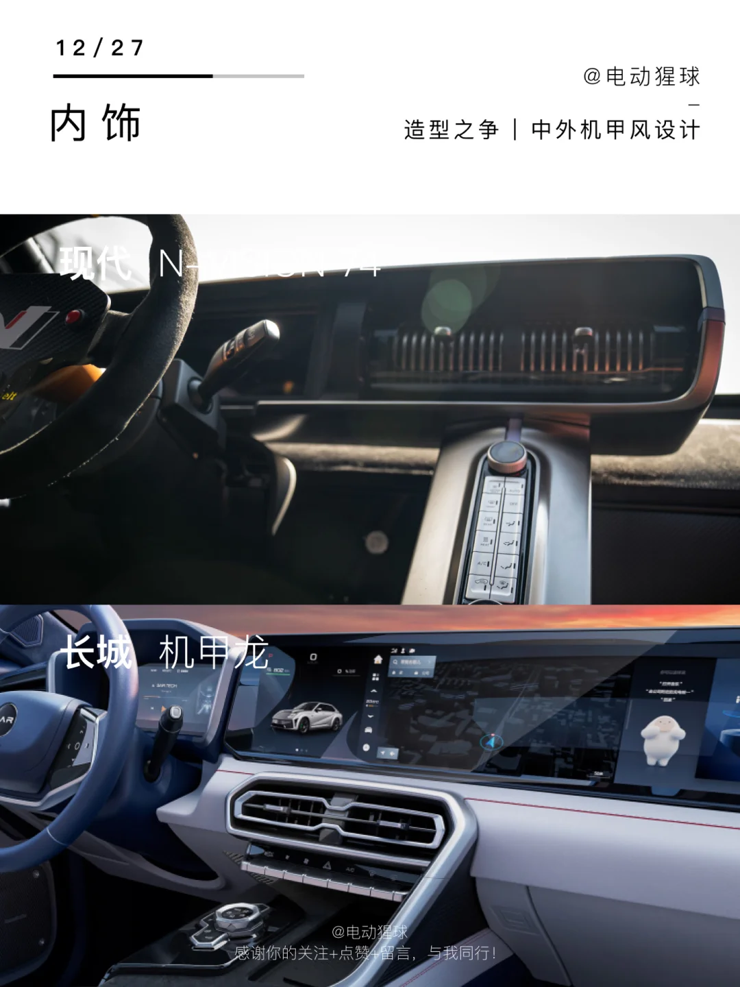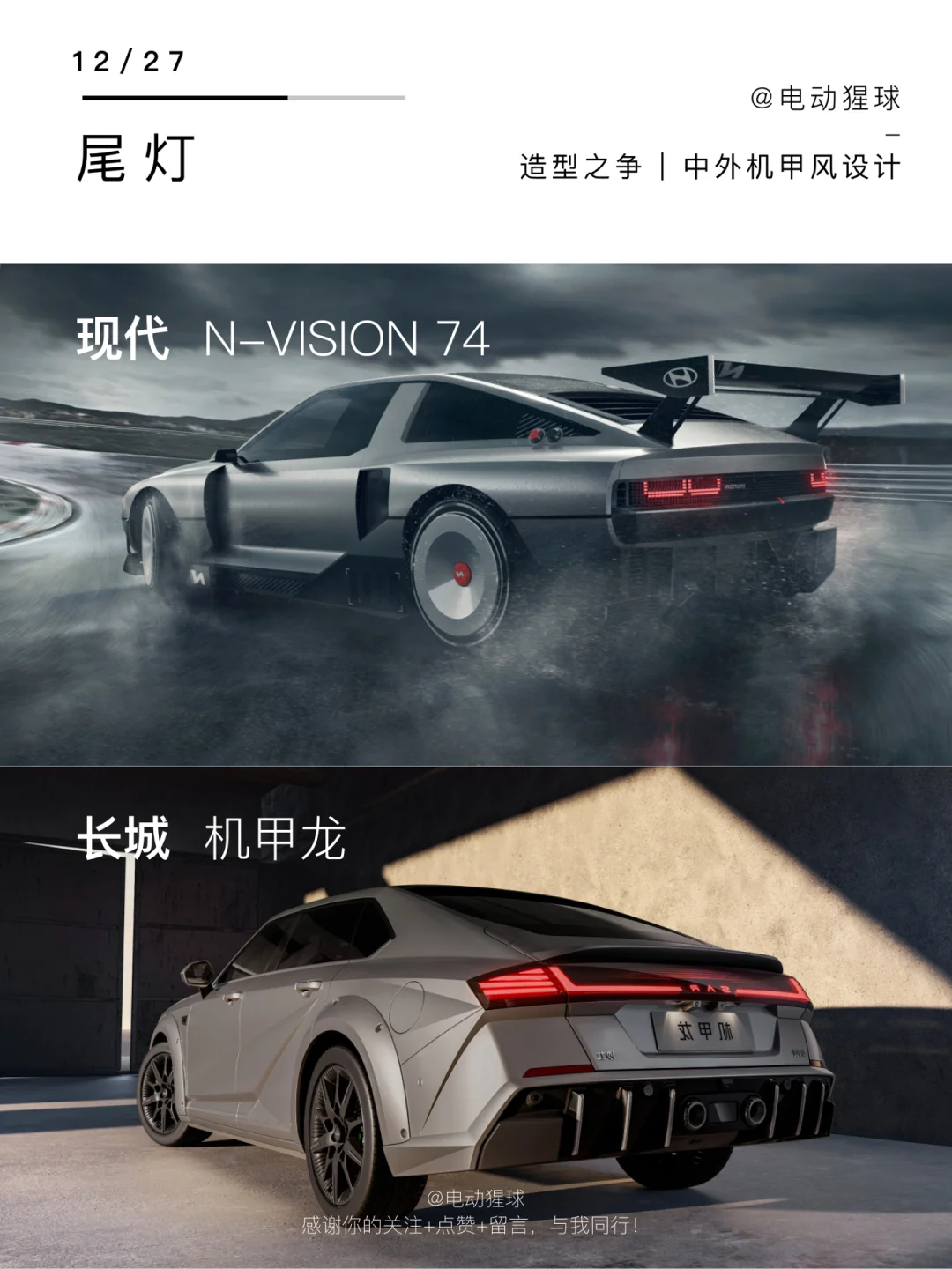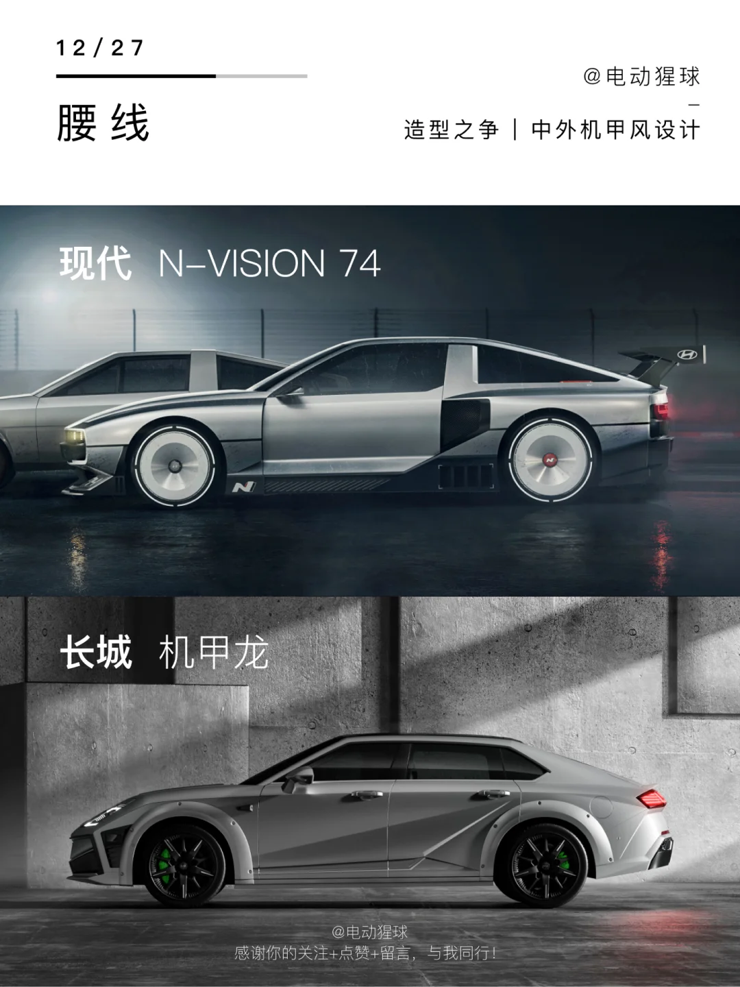 曲线圆润的设计已经审美疲劳了,硬派机甲风越来越流行 玩机甲风,做的比较好的是长安深蓝03,也不乏长城机甲龙这...另类 概念图发布之初一片骂声,没想到这车就快要量产了 国外也玩机甲风,现代的N vision 74,设计灵感来源于电影《回到未来》,整车没有过度设计,机甲未来感氛围非常到位,看完猩哥只想说,国产设计任重而道远