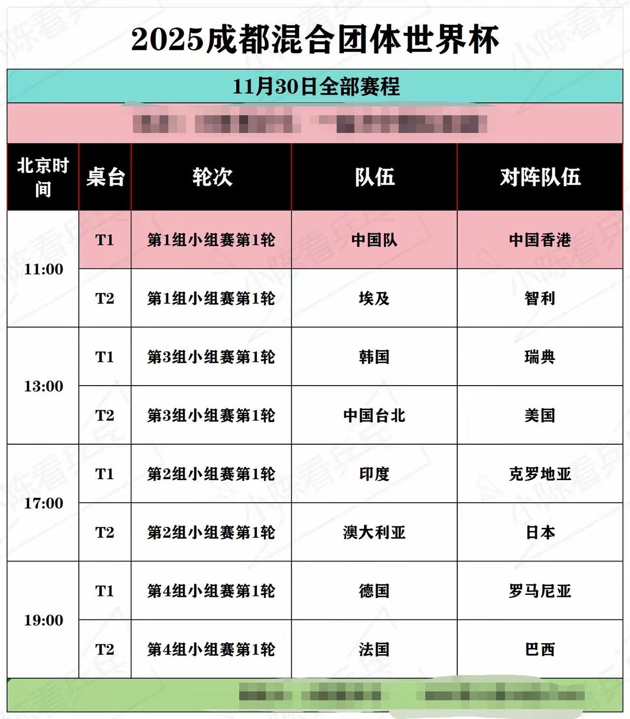 成都混合团体世界杯 首日关注焦点,中国队对阵中国香港队,11月30日上午国乒队首