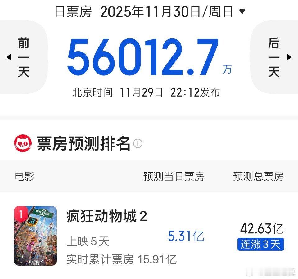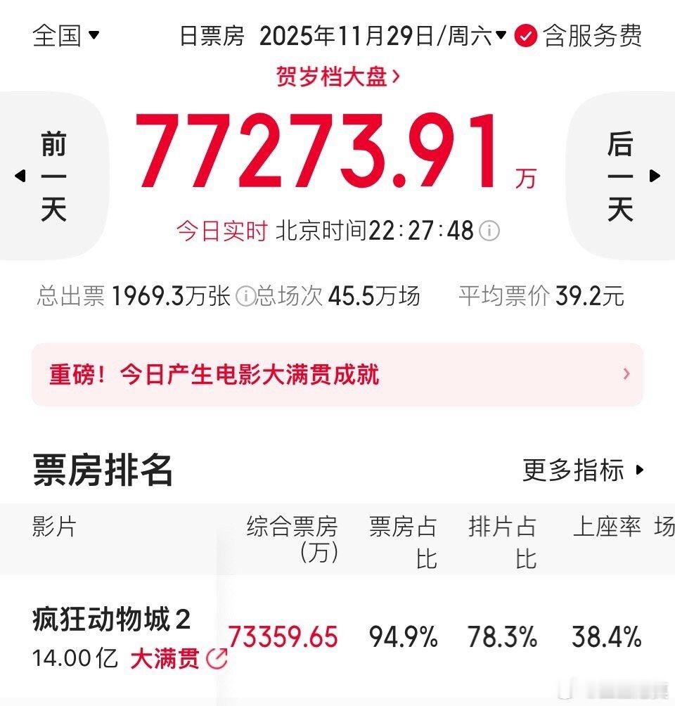 疯狂动物城2预售票房超复联4疯狂动物城2冲击进口片票房冠军 《疯狂动物城2》票房已经破14亿了。由于今天的疯狂表现(单日票房7.33亿),《疯狂动物城2》预售票房破42.6亿,超过了《复联4》的42.5亿。《疯狂动物城2》极有可能改写进口片票房纪录,成为进口片票房的新冠军。疯狂动物城2票房破14亿