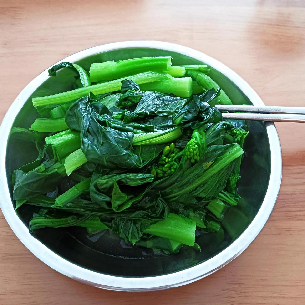 一个人一顿吃这么多青菜,是不是太多了,一个pang甘多~青菜买得比肉还多,一天低消一斤半