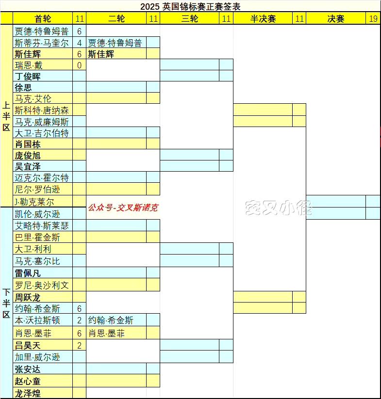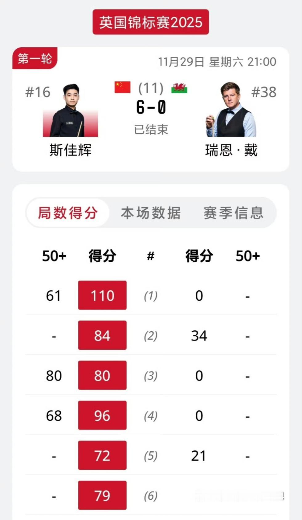2025斯诺克英锦赛首日,种子球员皆顺利晋级!中国球员一胜一负,卫冕冠军惊险晋级,墨菲5连鞭逆转。 斯佳辉6-0瑞恩戴 吕昊天2-6墨菲 特鲁姆普6-4马奎尔 希金斯6-2沃拉斯顿