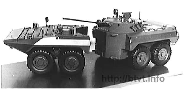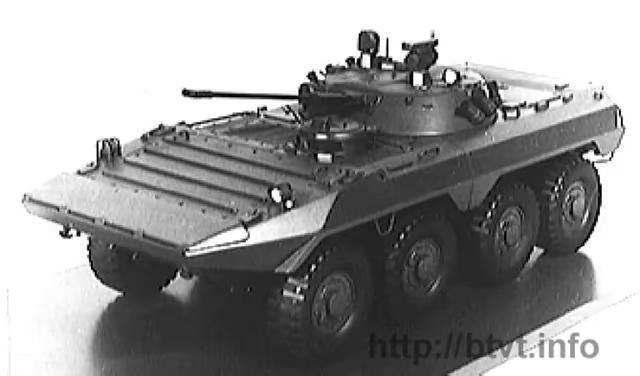 【战车】捷克斯洛伐克轮式步兵战车方案。缩比模型,该车型可能是BVP-2步兵战车(苏联BMP-2步兵战车的捷克版本)在前期设计阶段产生的一种方案,采用四轴全驱轮式底盘以及模块化设计,搭配类似于BMP-2步兵战车的炮塔,不过并未进一步发展。战车 装甲 装甲车 捷克