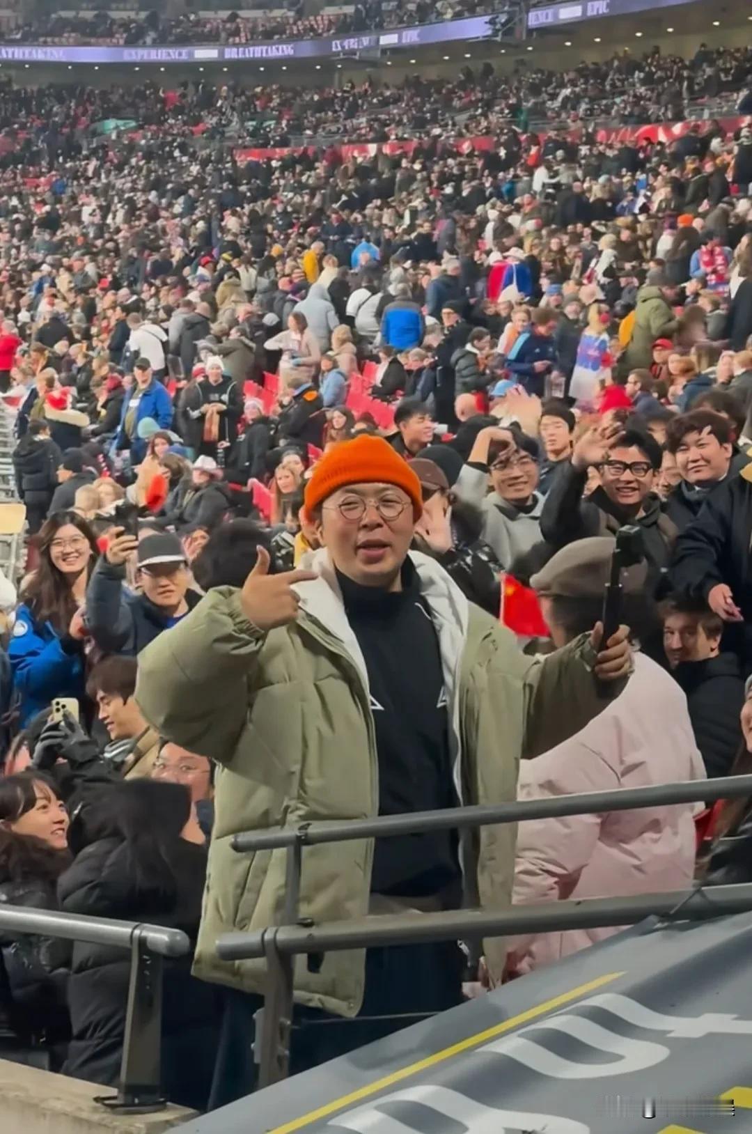 杜海涛带着妈妈在英国看球赛,中国女足对英国女足。 他戴着眼镜穿着一件绿色外套,妈妈穿着一件粉色外套。眉眼如出一辙的母子俩,一绿一粉在观众席上很抢眼。本来足球赛才是热点,却意外的被母子俩抢了焦点。[捂脸] 杜海涛本人很热情很接地气,对于来合影的几乎是全程配合。 就是有一说一,杜海涛真的是去英国留学而不是游玩吗?看英国满大街的人都在偶遇他,不是吃就是在玩,几乎没见到他在学校正式读书的照片,明星的游学这么有趣吗?[呲牙]