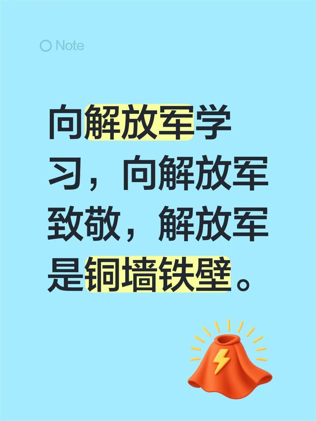 向解放军学习,向解放军致敬,解放军是铜墙铁壁。