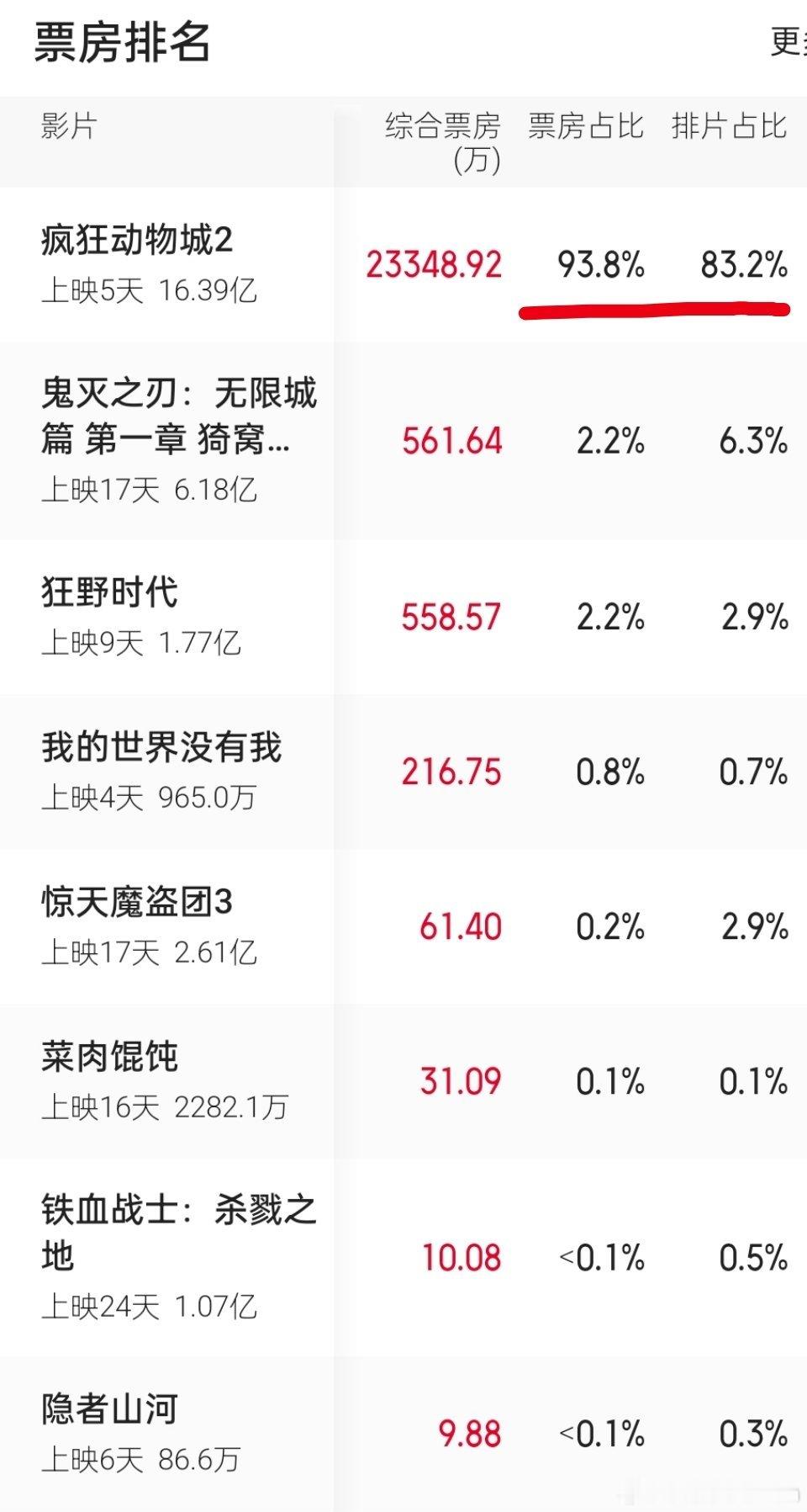 疯狂动物城2票房破13亿疯狂动物城的票房数据太惊人了,票房93%,排片83%事实证明,好电影不挑档期的。西方媒体也很震惊,不是说影视寒冬吗?结果一天7亿票房,这种票房爆发力只有中国能做到。