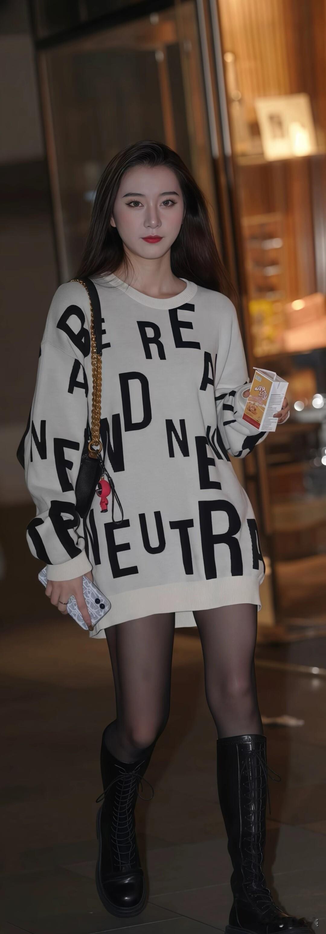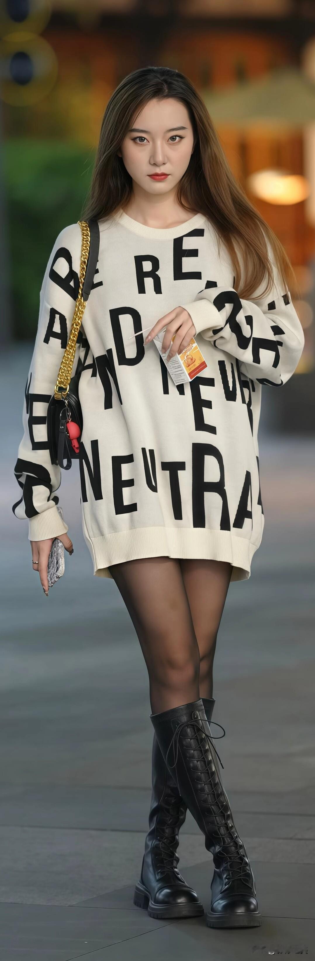 字母大毛衣宽松舒服,配平底靴,又酷又随性,日常这么穿时髦还不累~