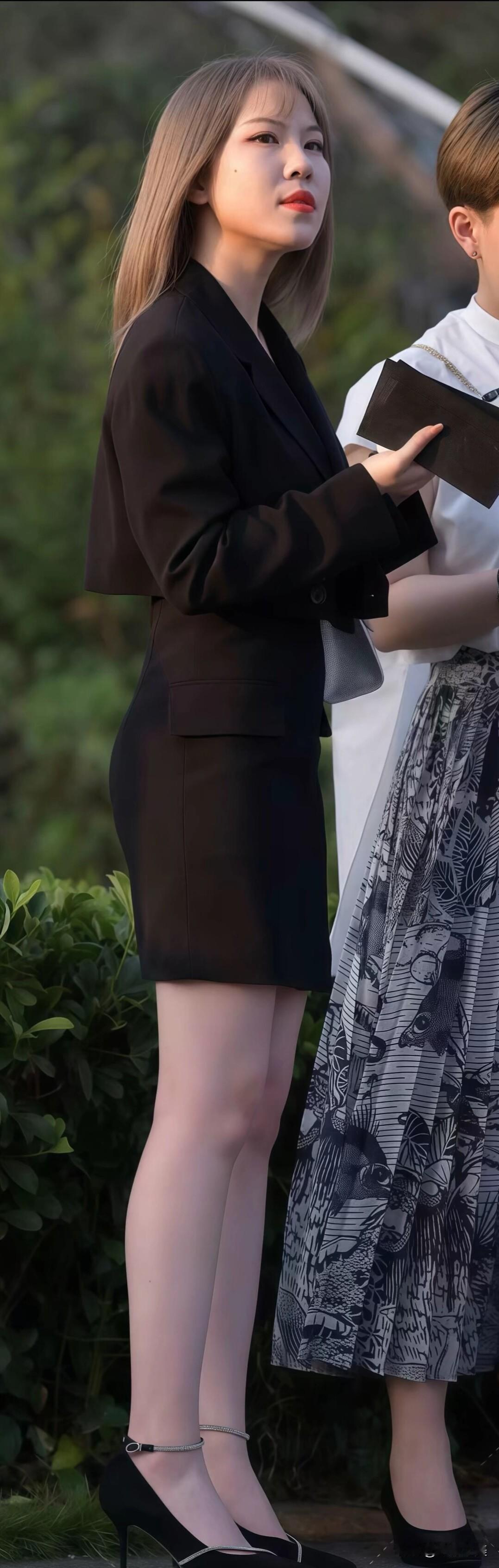 街头偶遇穿黑色西装裙的女生,简约利落又带点飒,搭个小银包好精致。