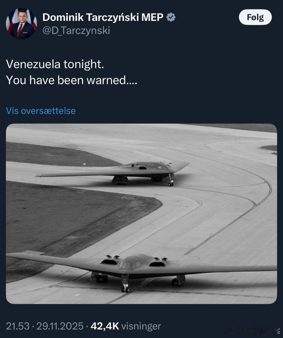 波兰籍欧洲议会议员多米尼克·塔尔钦斯基:今晚委内瑞拉。警告过你们了……委内瑞拉犯他太岁了?海外新鲜事热点现场
