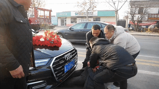 一男子竟然当街拦婚车索要香烟和红包? 结果他最后强行被人拖走! 对于这样耍无赖的人,真的不能惯着!