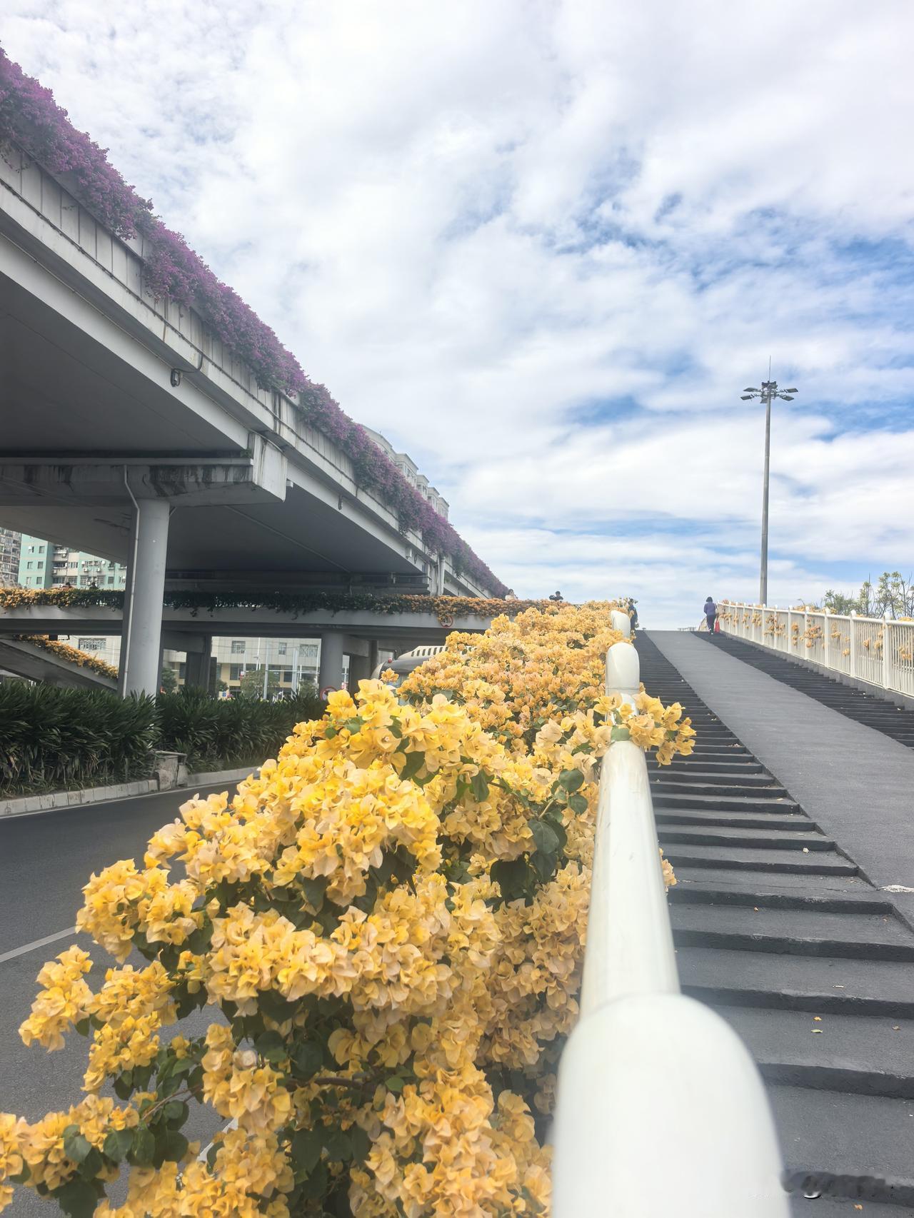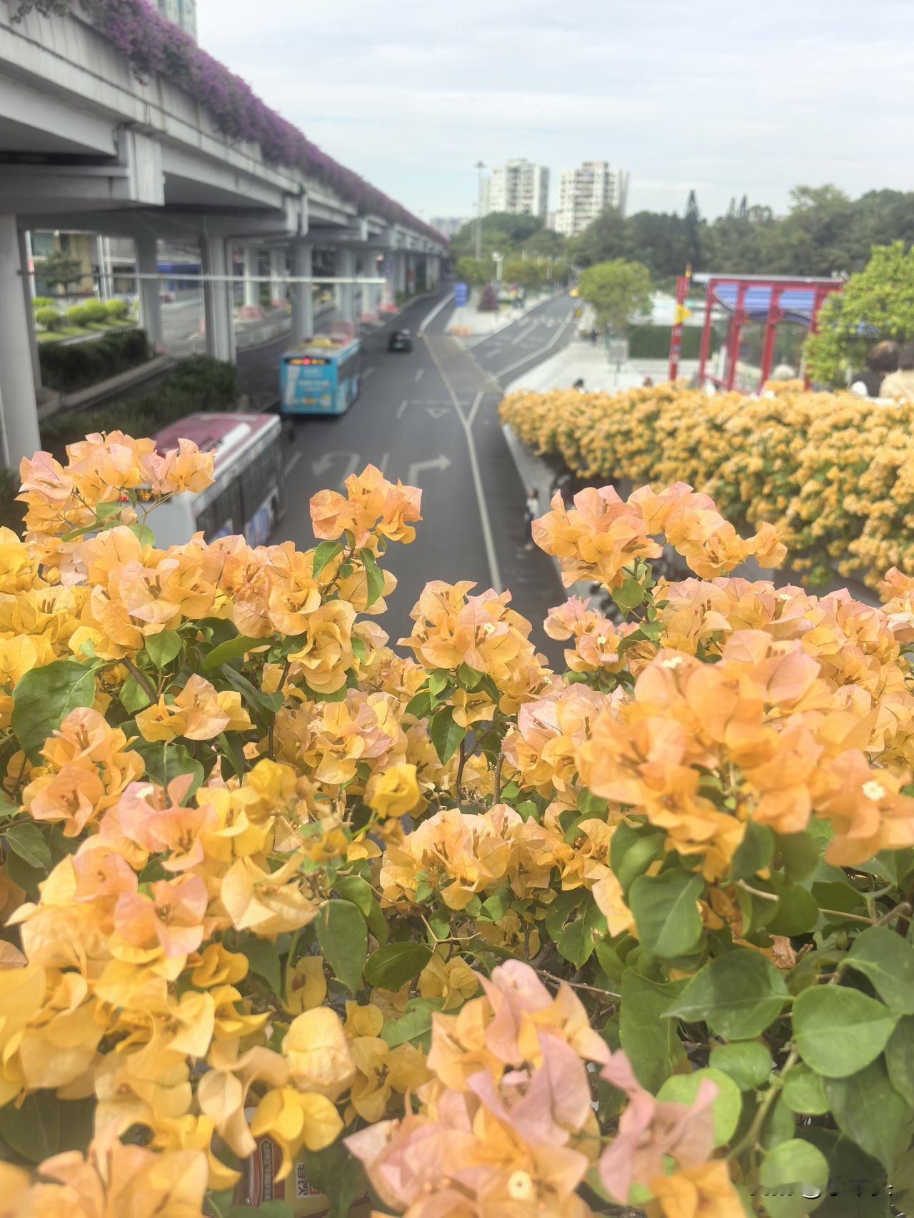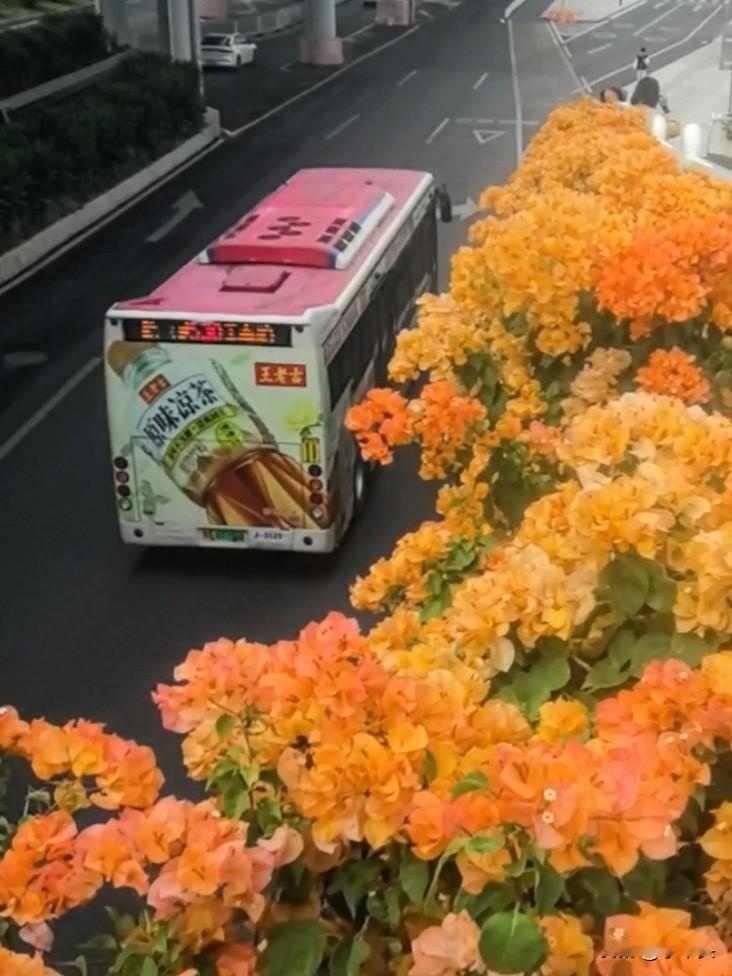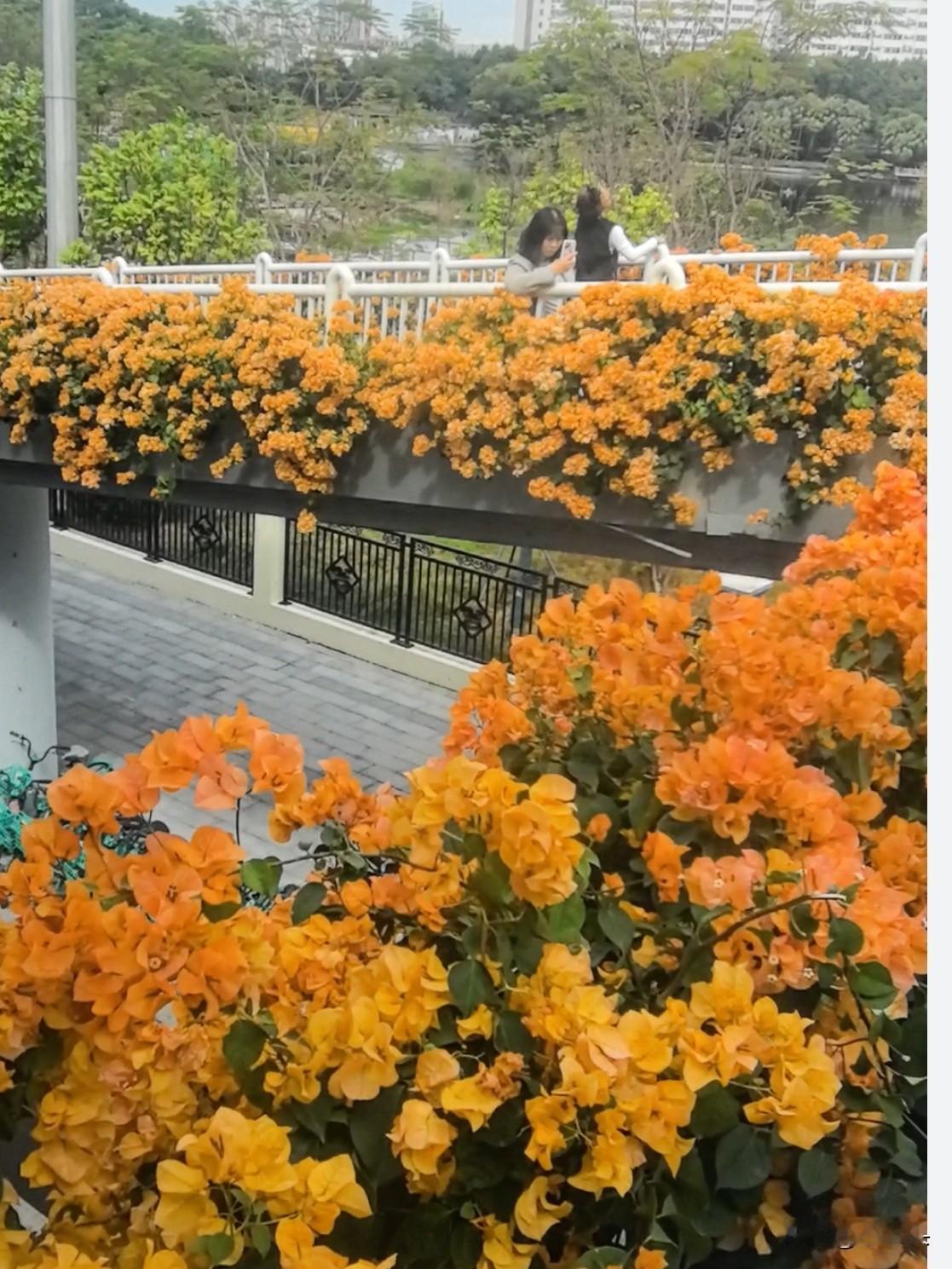 大美广州 果然处处有惊喜 途经彩虹桥 百米三角梅瀑布全线盛放 橘粉花浪倾泻而下