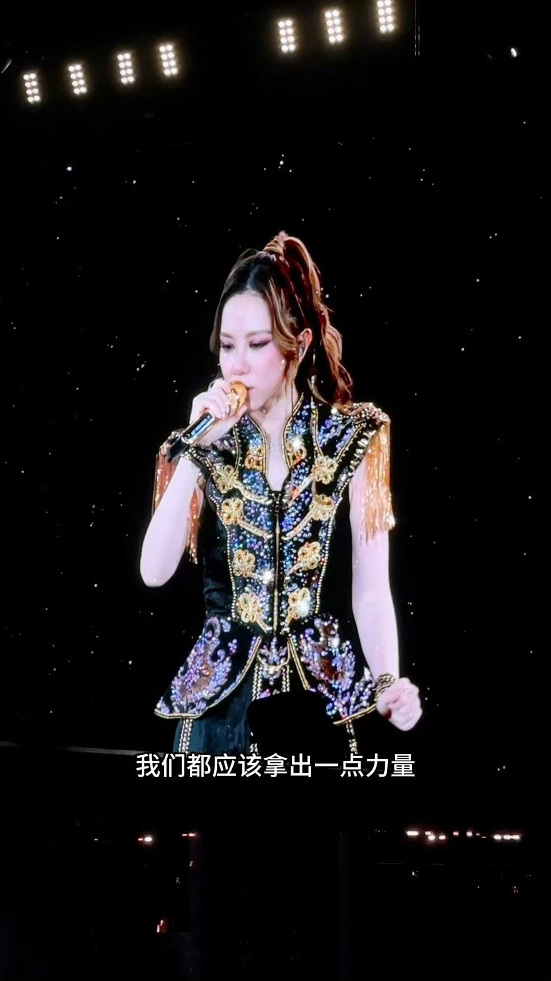 邓紫棋说要努力好好活着 当世界充满各种不确定,G.E.M.用她的音乐为我们撑起一把伞。她说要一起往前走,这份温暖让今晚的歌声格外动人。