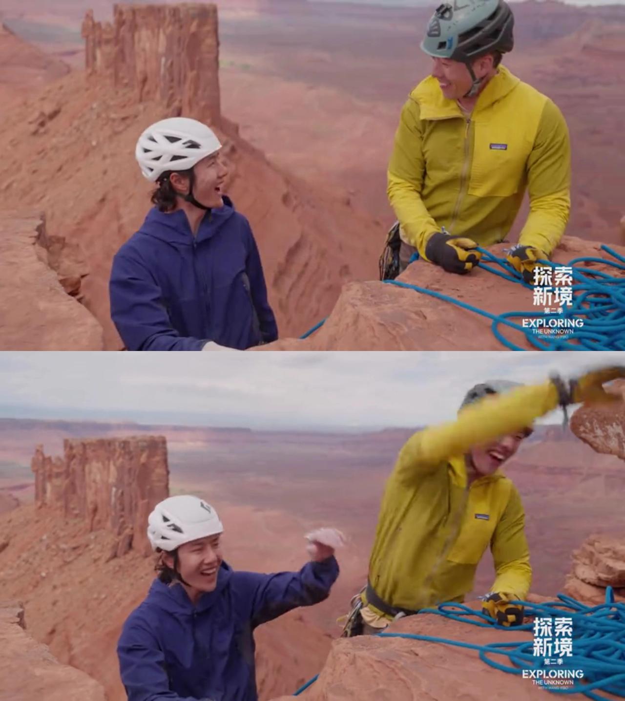 “顶峰见!”,这是绝对的强者之约! 有些人天天意淫脑补“顶峰相见”,却不知道真正强者的“顶峰相见”必定是旗鼓相当、英雄相惜、能力非凡,凭各自真本事真实力一步步攀登而上的“顶峰”。 如果是天上的雄鹰和井底的牛蛙,那任凭自我洗脑者再怎么编造故事,也不可能“顶峰相见”,因为牛蛙,它这辈子就压根儿没见过“顶峰”。 王一博攀岩靠自己一步步登上顶峰,王一博在内娱同样凭真本事一览众山小,独美,拒挂。 王一博 王一博探索新境2