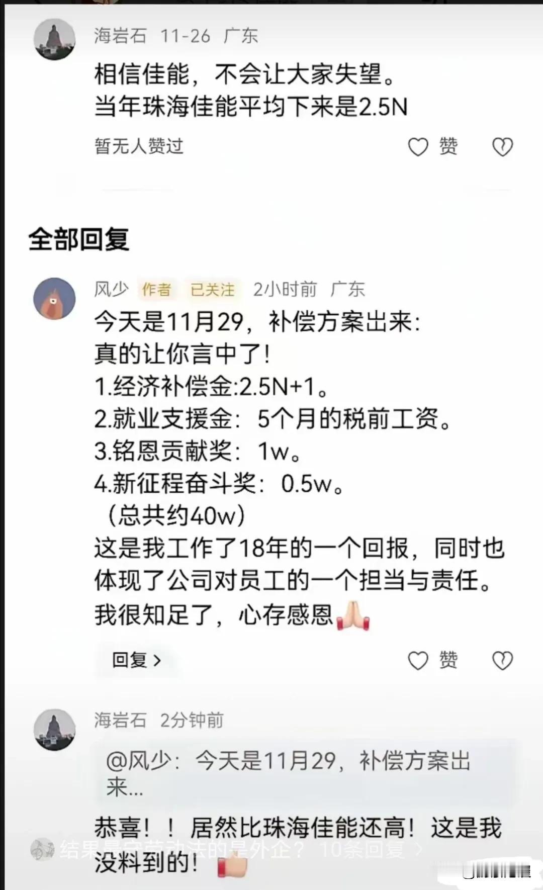 よし、好い、好きな、すごい、優秀な、優れる、美しい、素晴らしいですね! 一个时代落幕了! 工作18年,补偿40万,相当于在中山火炬开发区送一套70平方的两房电梯房了。 发达国家的纯外资企业(非假洋鬼子的外资企业)撤资,补偿方案一般都不错! 外资楷模,内资标杆!佳能广东中山工厂撤资,员工综合补偿方案3n+1,遥遥领先中国99%的企业补偿! 前两年佳能珠海撤资关厂,补偿方案是2.5n,这次更加优厚。 其实很多人都接触过佳能的产品,像数码相机,单反相机,打印机等。 十几年前请去日本出差的同事在日本买过两个佳能数码相机。 第一个在去澳门玩的时候回来在关闸还是拱北口岸附近被偷了。 第二个现在还能用,前几天还翻出来了。 具体原装电池还可以使用,没有鼓包。后来配的国产品牌电池已经鼓包了,前几天刚丢了。 佳能打印机也买过三个,买过两个墨盒喷墨打印机,最近又买了一个连续供墨的佳能打印机。