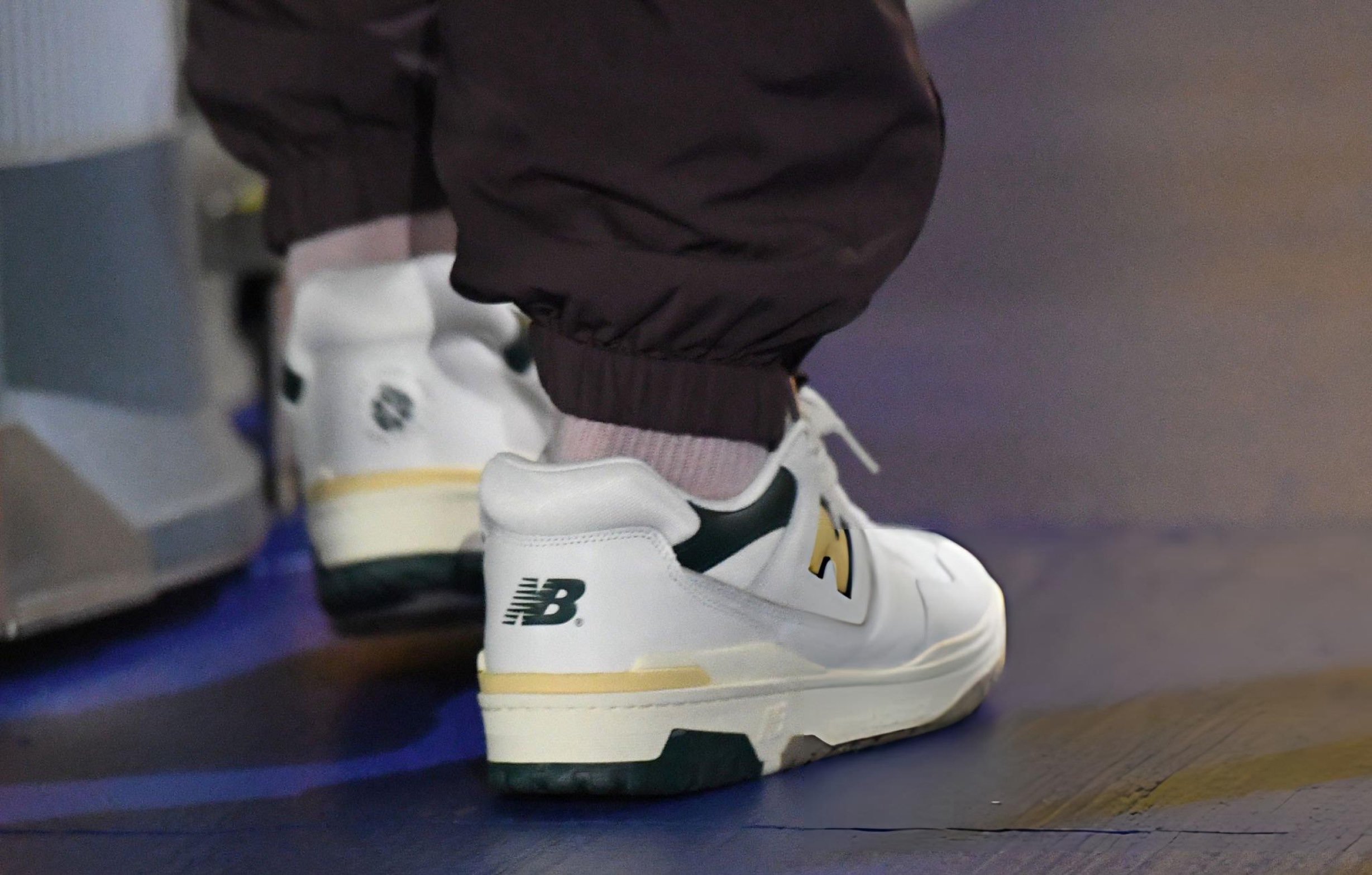 Aimé Leon Dore x New Balance NB 550 库里今天穿了双联名的NB550白色的NB羽绒服马甲看着不错,裤子应该是FOGCurrySoleNews鹈鹕vs勇士库里