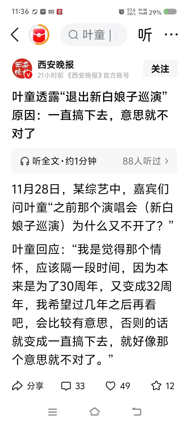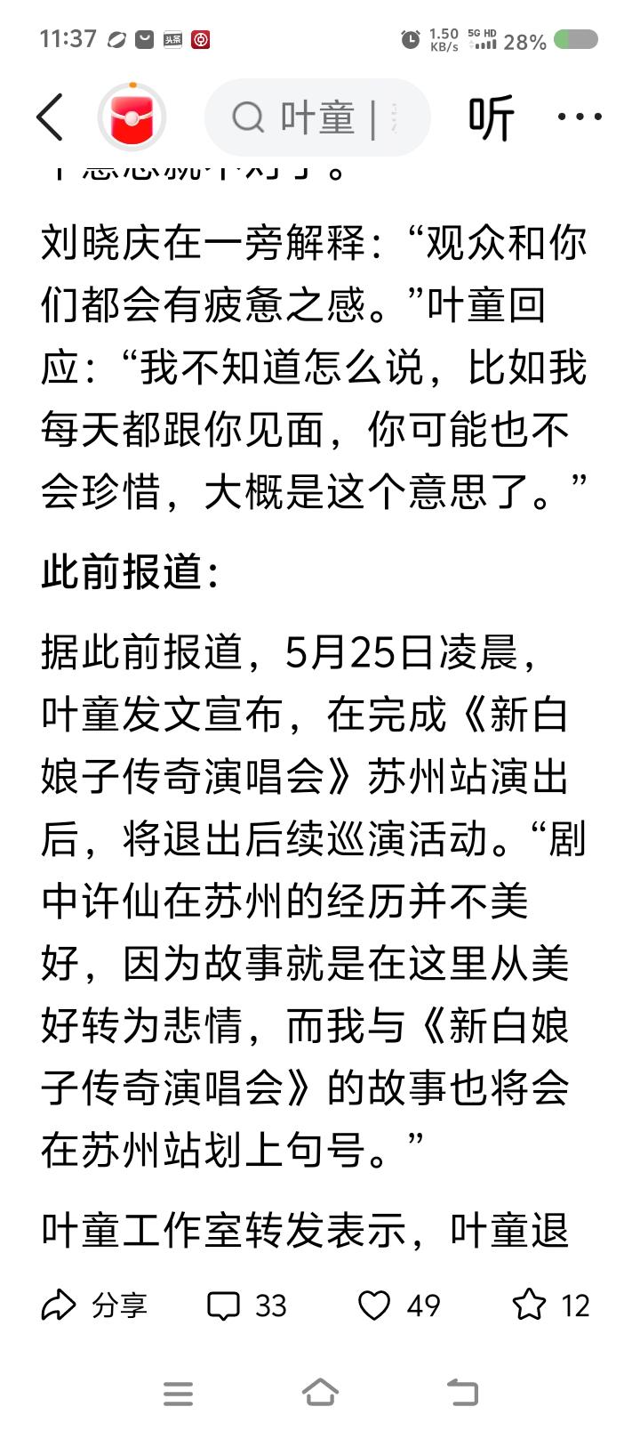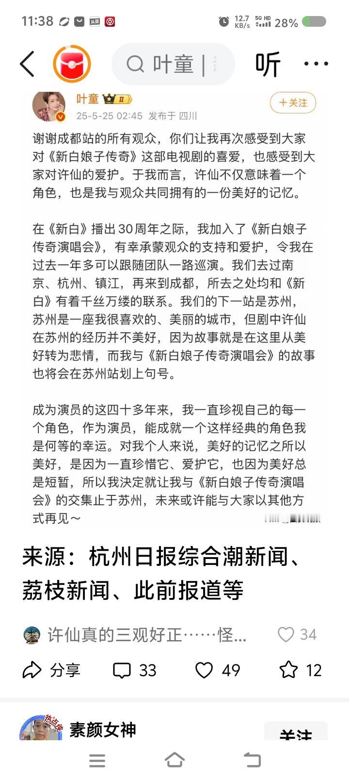 “许仙”的清醒—— 据报道,某节目中,许仙扮演者叶童回应为何退出“白娘子传奇巡演”:“情怀需要隔一段时间展现。”这个解释比她当时平台上的发文更符合实际。可见,公众人物的发言,你只能作为参考。 节目里,她还说,成名早,年轻时浪费了很多时间,现在提高了做事效率,一天可以做很多事。 这种状态,与一般人相反。一般人,前半生拼搏,节奏快,后半生慢下来了。