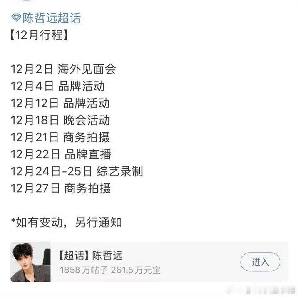 今日公布12月行程的艺人有:陈哲远、刘雨昕、陈都灵、田嘉瑞,从行程上看谁火一目了然。