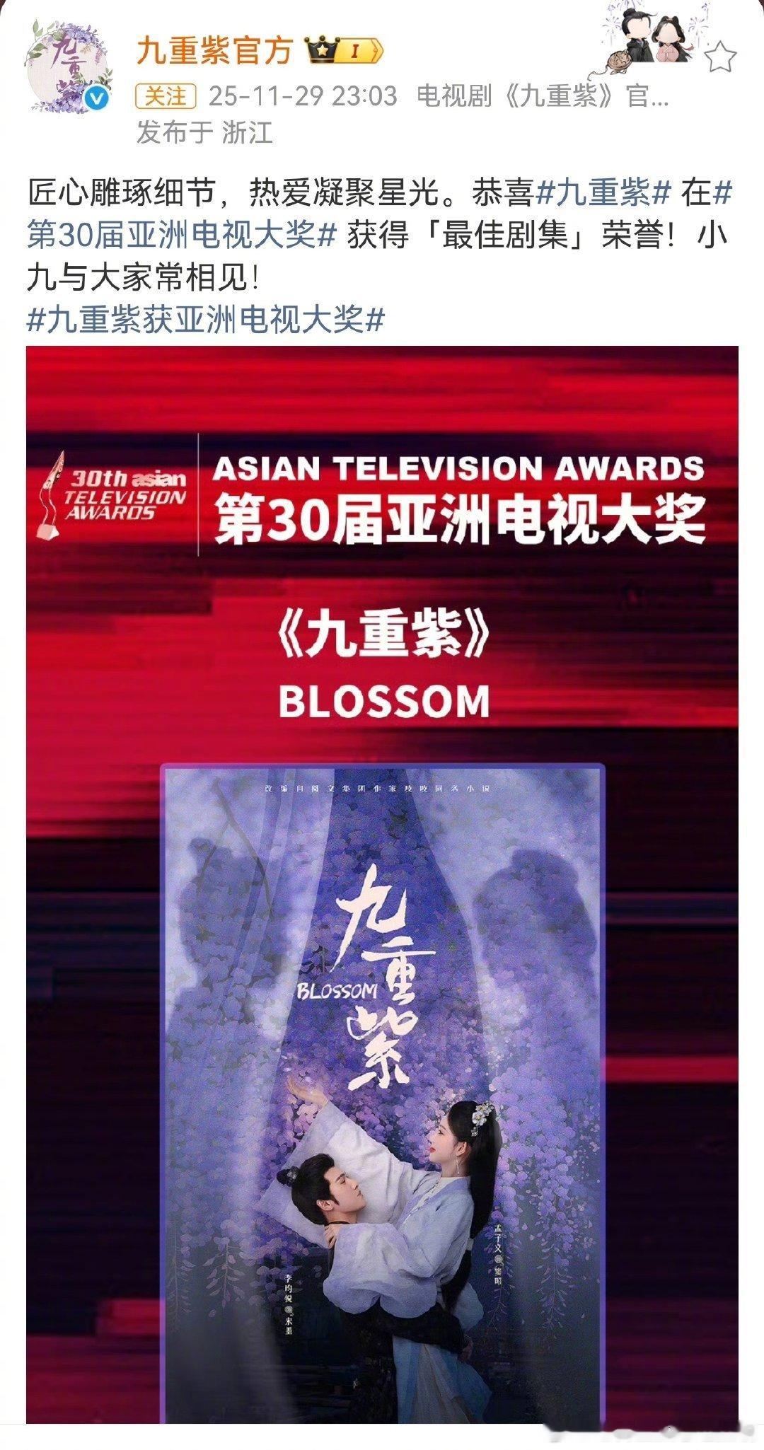 孟子义李昀锐的《九重紫》获得亚洲电视大奖最佳剧集奖项