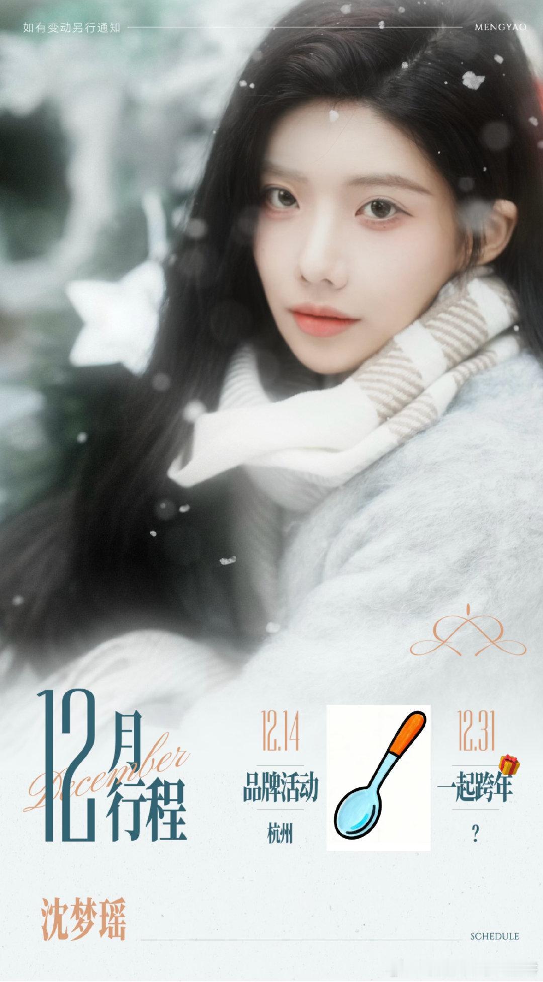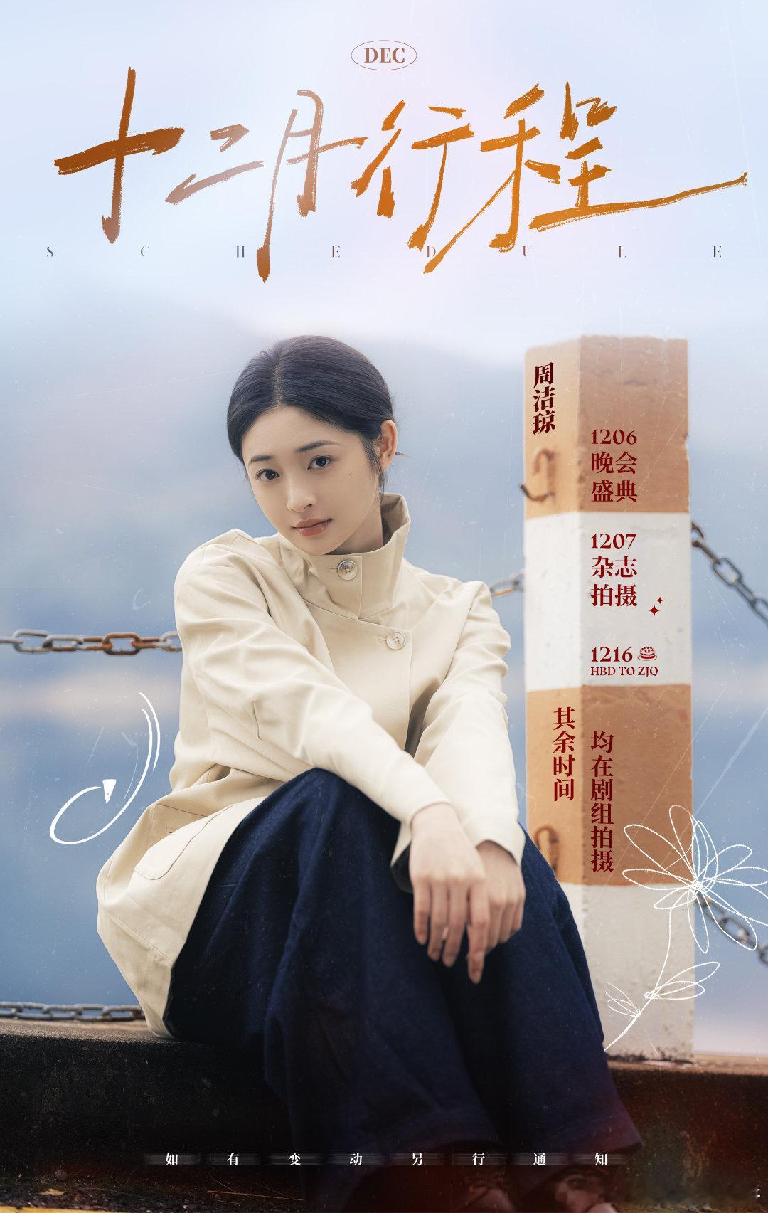 女明星们的十二月行程图陈都灵 宋祖儿 张婧仪 李兰迪 吴谨言 刘雨昕 艾米 沈梦瑶 周洁琼 王玉雯 张予曦 林允